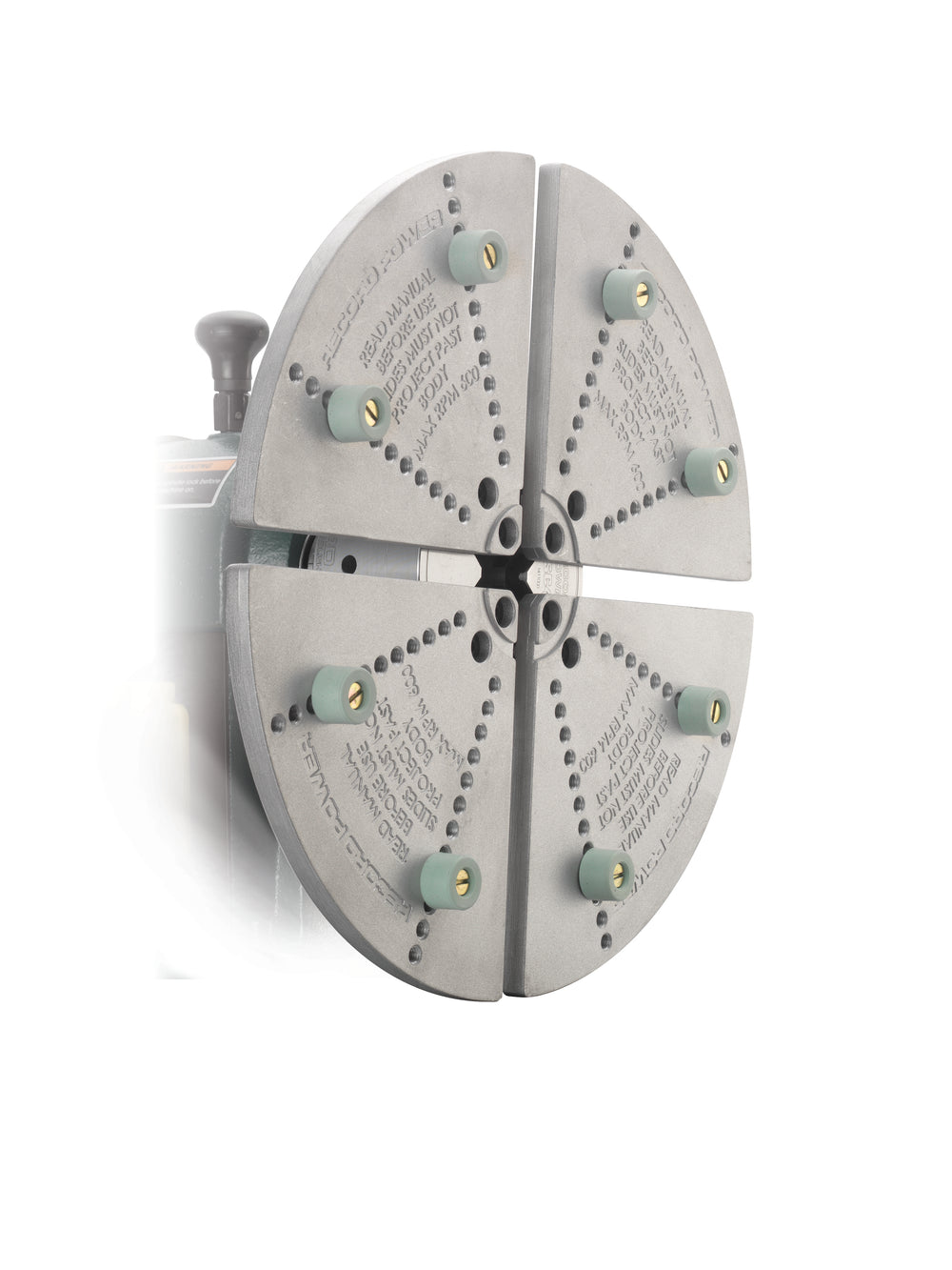 Le ganasce di ripresa con tamponi angolari morbidi Record Power – versione Mega sono progettate per offrire una capacità maggiorata nella ripresa e rifinitura di ciotole di grandi dimensioni, fino a 295 mm di diametro. Questa versione nasce in risposta alle richieste dei tornitori professionisti, mantenendo al tempo stesso la compatibilità con torni dotati di volano da 12”, grazie a un design che consente di liberare il bancale durante la rotazione.