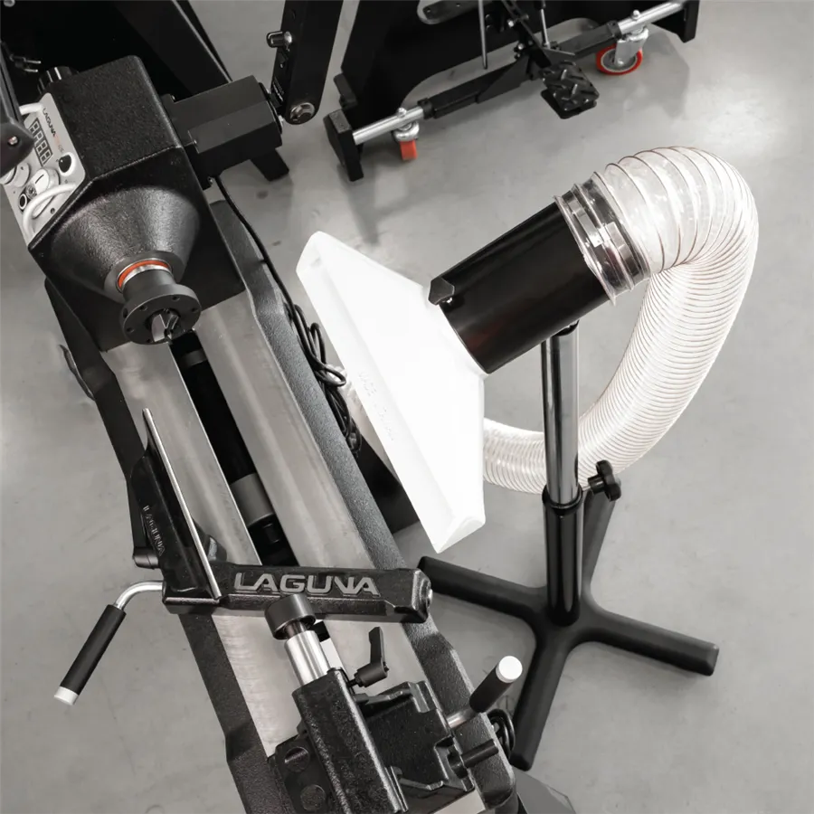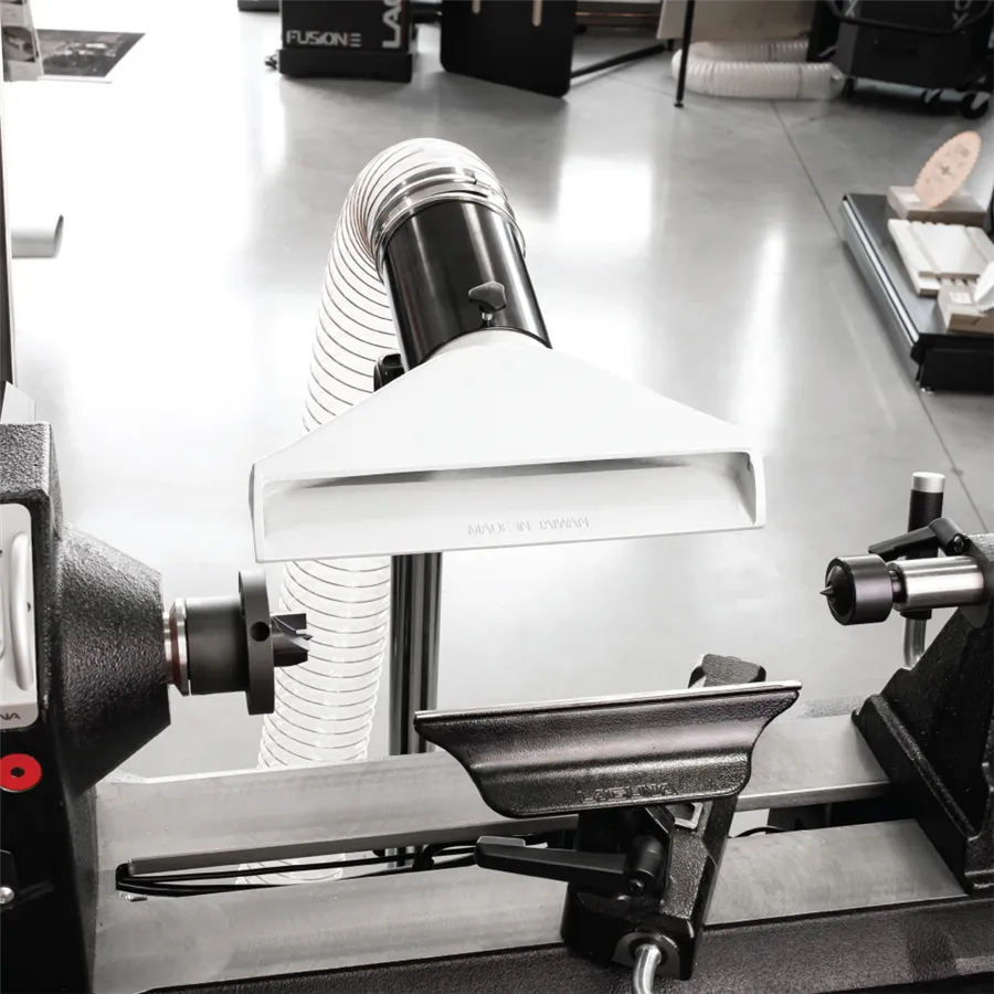 Questa tipologia di aspiratore è la soluzione ideale per l'aspirazione dei residui da tornio per legno o da altre fonti di polvere, quando una connessione diretta alla macchina per la lavorazione del legno non è possibile o comoda. Regolabile in altezza da 710 mm a 1220 mm, è dotata di un meccanismo di inclinazione che permette di posizionare la fessura di raccolta nell'angolazione ottimale. La cappa è realizzata in lega di alluminio fuso e la fessura di raccolta ha dimensioni di 300 x 50 mm, offrendo ampio spazio per l'aspirazione efficiente dei residui. Si collega facilmente a un tubo flessibile del diametro di 100 mm che conduce a un estrattore con una capacità di circa 1.000 m3/ora, assicurando un ambiente di lavoro pulito e libero da polveri nocive.
