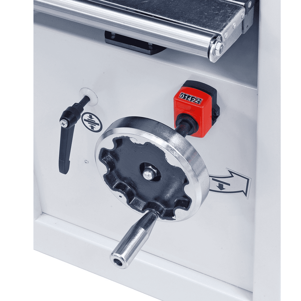 La pialla a spessore Bernardo DH 410 S è una macchina professionale ad alte prestazioni, progettata per falegnamerie e laboratori che necessitano di potenza e precisione. L’albero a spirale con 72 inserti TCT garantisce superfici perfette, una rumorosità ridotta fino al 50% rispetto alle lame tradizionali e manutenzione semplificata: ogni inserto è reversibile e sostituibile singolarmente. Con una larghezza utile di 410 mm, profondità di passata fino a 5 mm e avanzamento costante di 6 m/min, permette lavorazioni fluide anche su grandi pezzi. La tavola è dotata di estensioni con rulli integrati per facilitare l’avanzamento del materiale, mentre l’indicatore digitale consente di impostare l’altezza con precisione millimetrica. Il motore trifase da 3,0 kW (4,0 HP) offre potenza continua e affidabilità. Una macchina compatta e robusta (239 kg), ideale per un utilizzo intensivo.