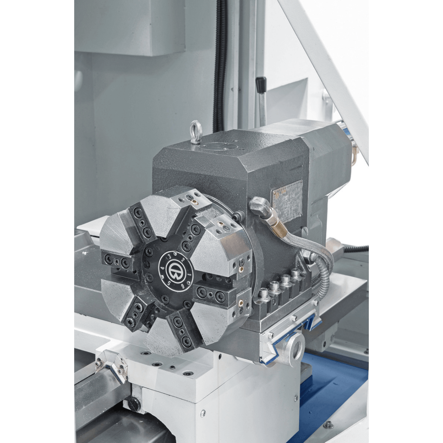 È incluso un mandrino autocentrante idraulico Ø 200 mm con centralina idraulica, che assicura bloccaggi rapidi, sicuri e precisi del pezzo in lavorazione.