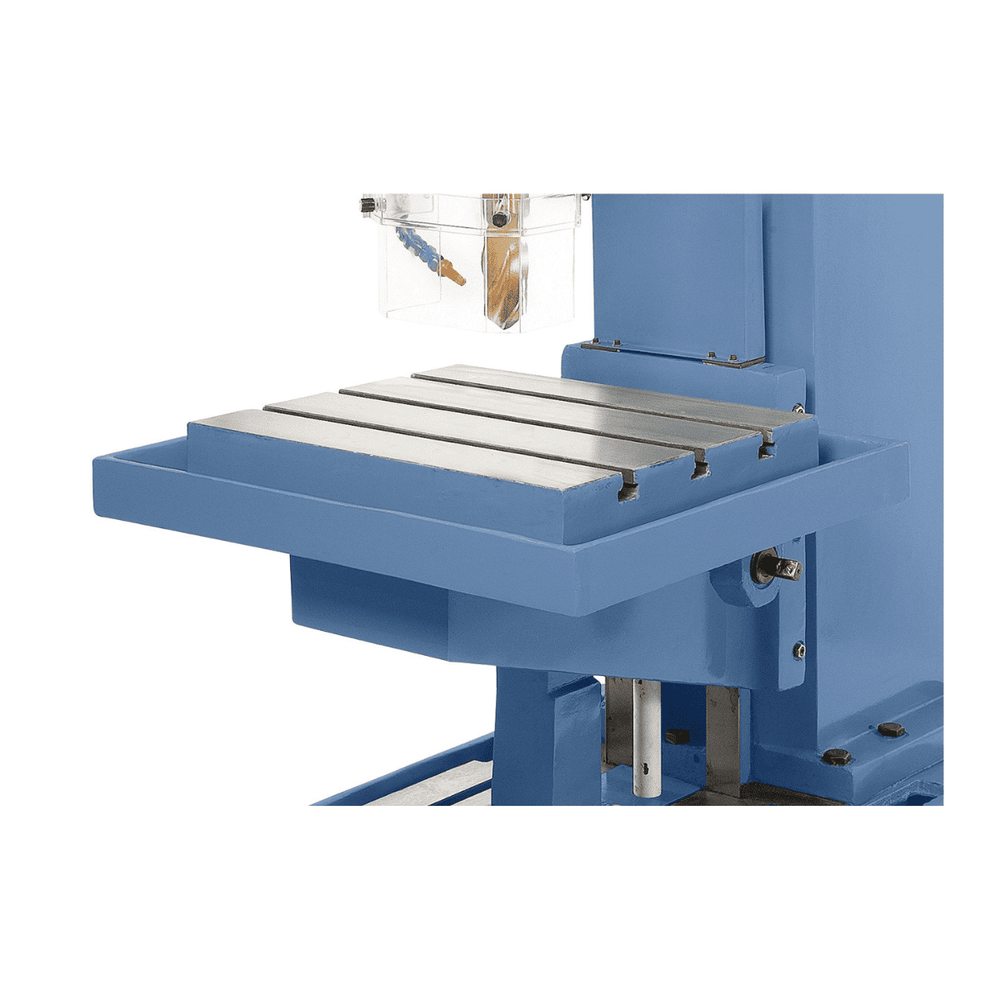 Il Bernardo Trapano a colonna fissa KBM 40 è progettato per applicazioni professionali e industriali che richiedono potenza, precisione e robustezza. Con una capacità di foratura fino a 40 mm e filettatura fino a M30, si distingue per le prestazioni elevate e la solidità della costruzione in ghisa grigia. Il motore da 3,0 kW eroga una coppia di 350 Nm con forza di avanzamento fino a 16.000 N, garantendo lavorazioni affidabili e costanti. Il mandrino dispone di avanzamento automatico con 9 gamme di avanzamento e 12 velocità comprese tra 31,5 e 1400 giri/min. La tavola in ghisa con cave a T e sollevamento di 315 mm assicura massima versatilità. Dotato di dispositivo di filettatura con inversione automatica, lampada LED, refrigerante e protezioni di sicurezza, il KBM 40 è un trapano a colonna ideale per officine e produzioni meccaniche pesanti.
