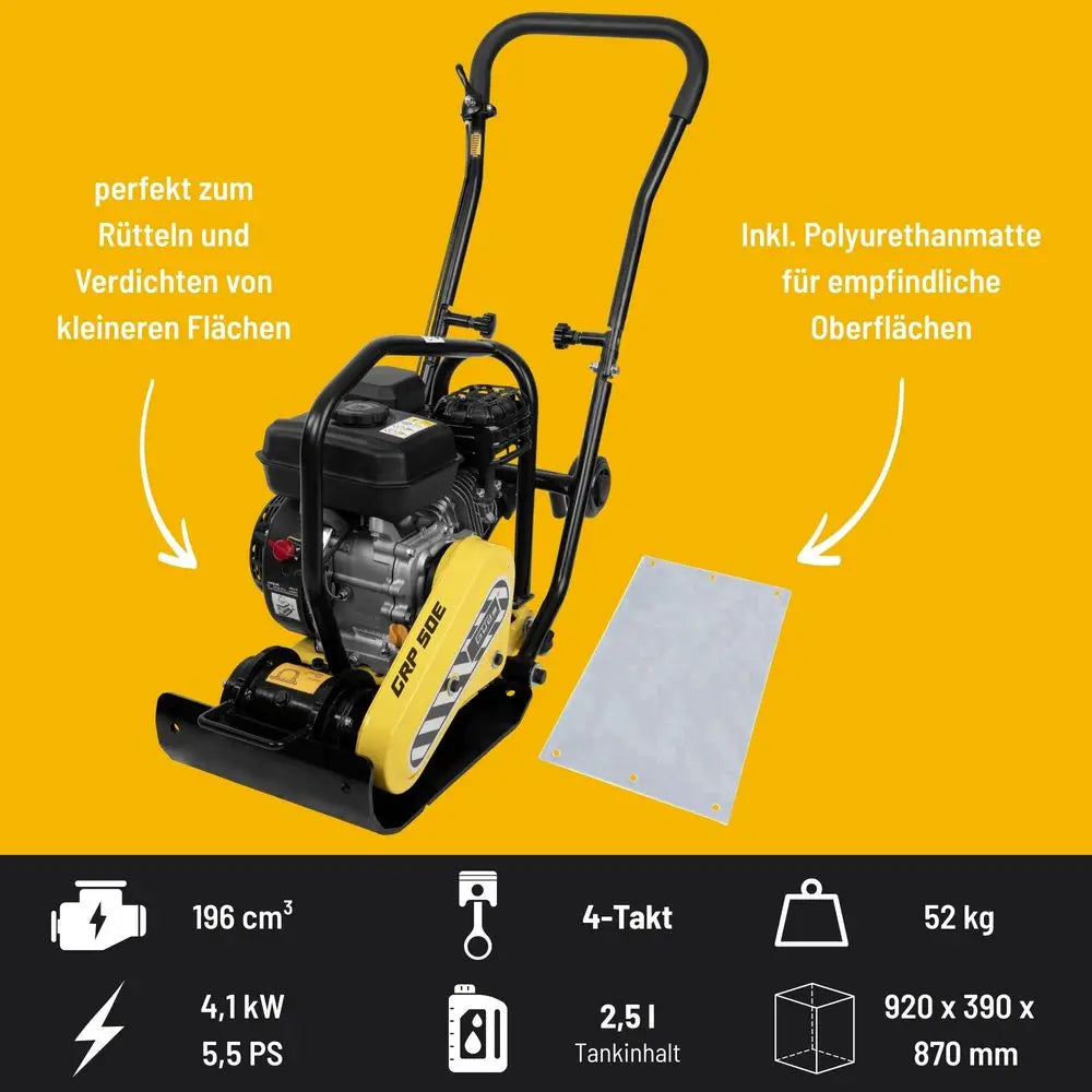 La piastra vibrante Güde GRP 50E è ideale per la compattazione di superfici di piccole dimensioni come vialetti, percorsi, terrazze e lavori di manutenzione domestica. Il design compatto e il peso contenuto consentono di raggiungere facilmente angoli e spazi ristretti, garantendo una compattazione uniforme su sabbia, ghiaia e terreni misti. Il motore a 4 tempi da 4,1 kW assicura prestazioni affidabili, mentre l’avanzamento automatico facilita il lavoro continuo. La piastra base indeformabile e anti-usura offre stabilità e risultati costanti nel tempo. Il telaio in acciaio robusto, il manubrio pieghevole con sistema antivibrazioni e la protezione per basso livello dell’olio aumentano comfort e sicurezza. Il tappetino in poliuretano e il carrello inclusi rendono la GRP 50E versatile e adatta anche a superfici delicate.
