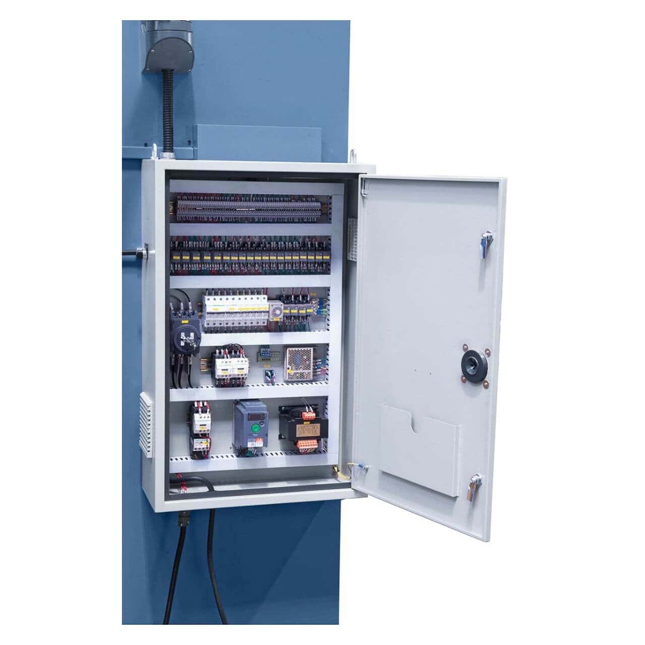 La piegatrice idraulica AKPL 3200 x 160 è progettata per soddisfare le esigenze di officine e carpenterie che necessitano di una macchina potente e versatile per la lavorazione di lamiere di grandi dimensioni. Con una forza di piegatura da 160 tonnellate e una lunghezza utile di 3200 mm, garantisce prestazioni elevate e risultati precisi anche con spessori importanti. Il sistema di bombatura manuale del banco, fornito di serie, assicura pieghe perfettamente uniformi lungo tutta la lunghezza di lavoro. Grazie ai cilindri sincronizzati, al telaio robusto in acciaio e al riscontro posteriore con vite a ricircolo di sfere, la macchina offre stabilità, affidabilità e precisione. Il controllo numerico NC E21S rende la gestione semplice e intuitiva, mentre il sistema di cambio rapido degli utensili riduce i tempi di setup.