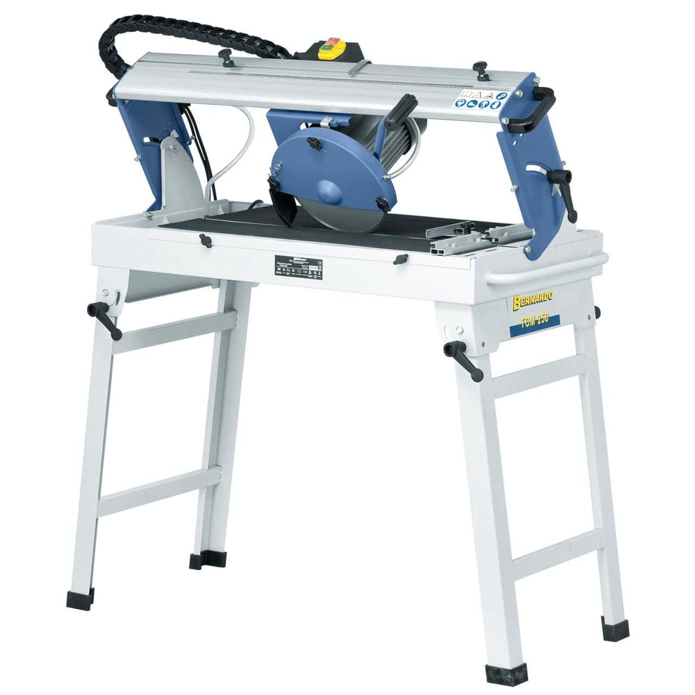 La segatrice radiale ad acqua per pietra Bernardo TCM 250 è dotata di un robusto piano con supporti pieghevoli in modo da occupare il minore spazio possibile quando non viene utilizzata. Il potente motore ad induzione da 1.1KW a 2950 giri/min permette un taglio lineare e preciso. Si possono effettuare tagli radiali da 90° a 45° con facilità. Dotata di una potente pompa ad acqua da ben 500lt/ora per raffreddare in modo efficace la lama consentendone una durata prolungata. Semi-professionale.