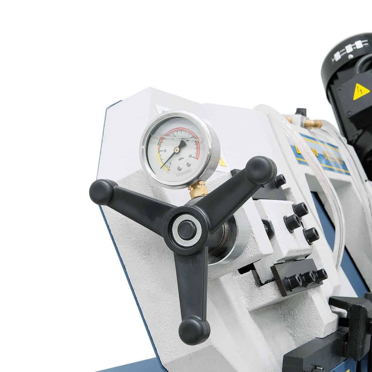 - Pressure gauge for tensioning the belt