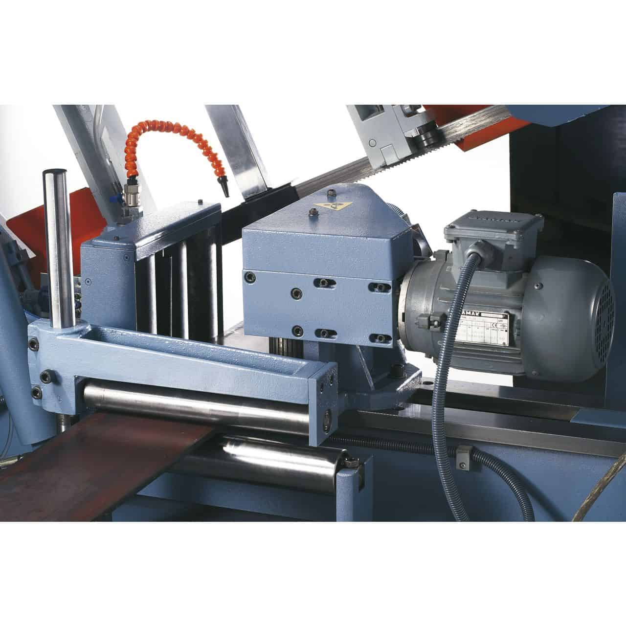 - The material is fed by motorized rollers in the vice : The motorized rollers inside the vice feed the material into the saw, ensuring smooth and precise feed during cutting.