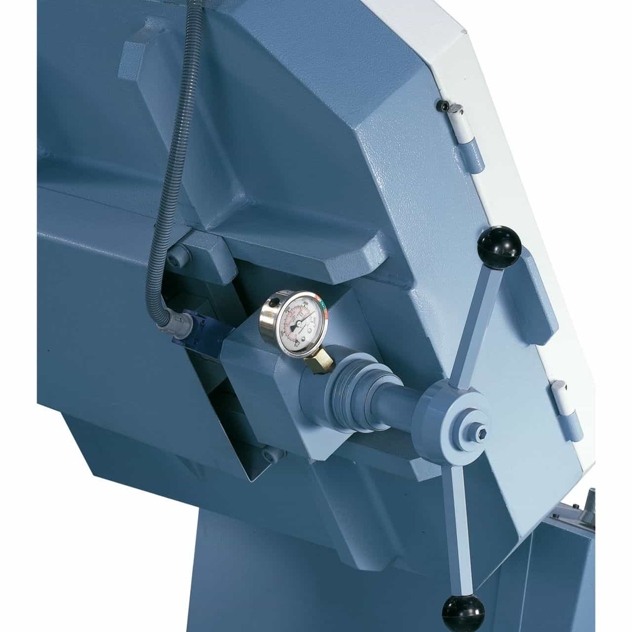 - Equipped with a pressure gauge for optimal adjustment of the belt tension : The presence of a pressure gauge allows you to optimally adjust the belt tension, ensuring a long blade life and precise cutting results.