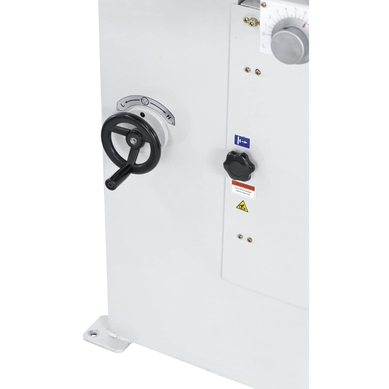 - Blade tension adjustment is done via the handwheel : The blade tension can be adjusted via a handwheel, allowing for precise control and quick correction of the blade tension while cutting.