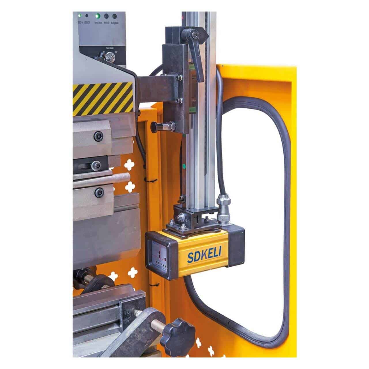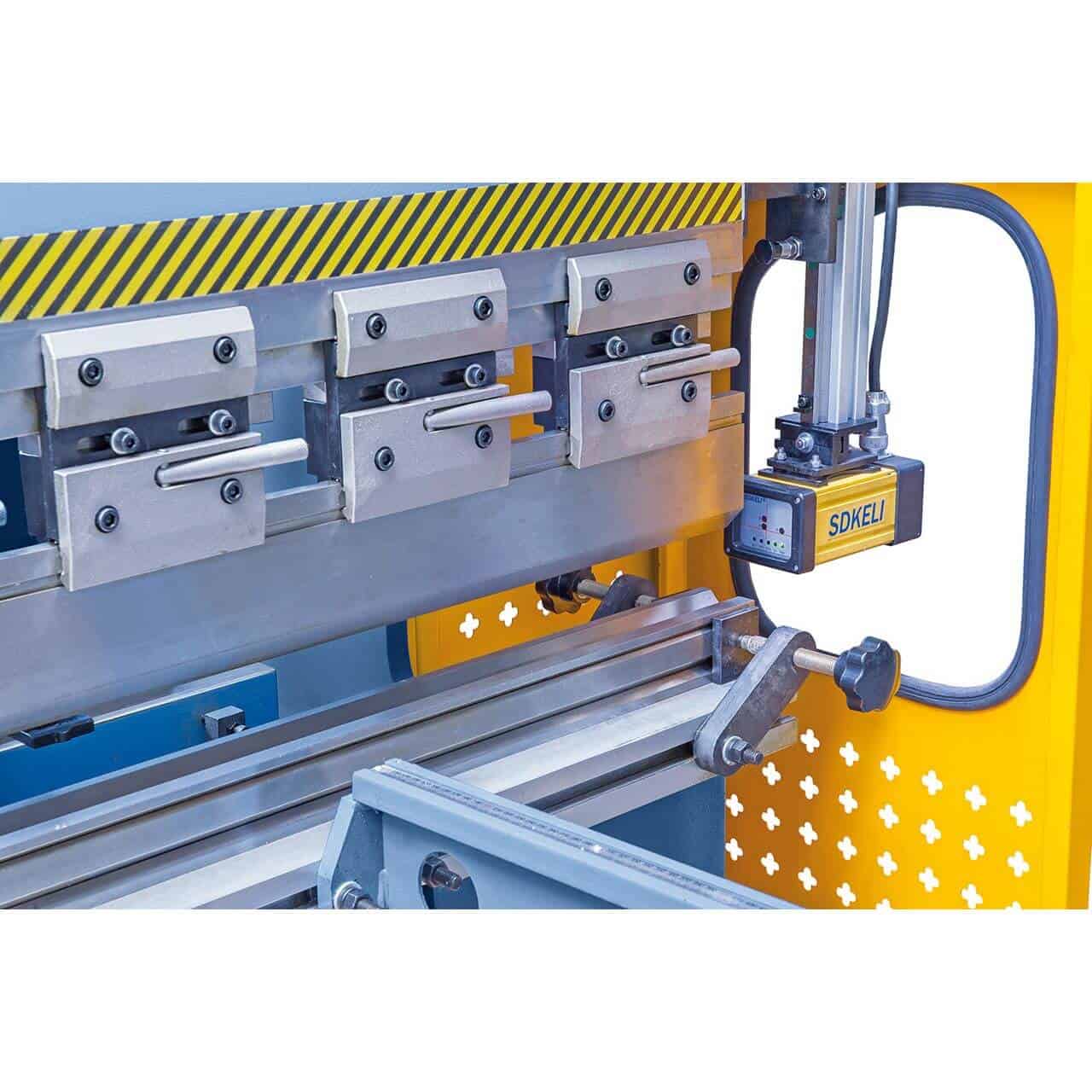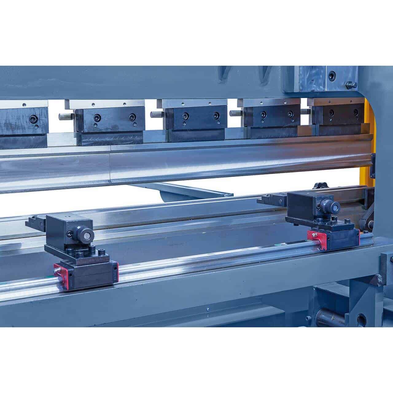 Utensile superiore con bloccaggio rapido (quick-clamping) e utensile inferiore con 8 aperture a V, più supporto frontale per lamiera per facilitare il posizionamento dei pezzi.
