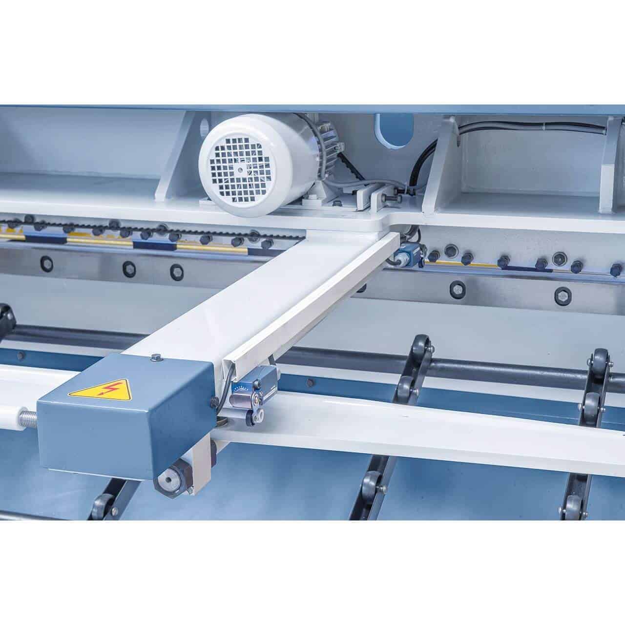 - Motorized rear stop, precise movement thanks to recirculating ball spindles