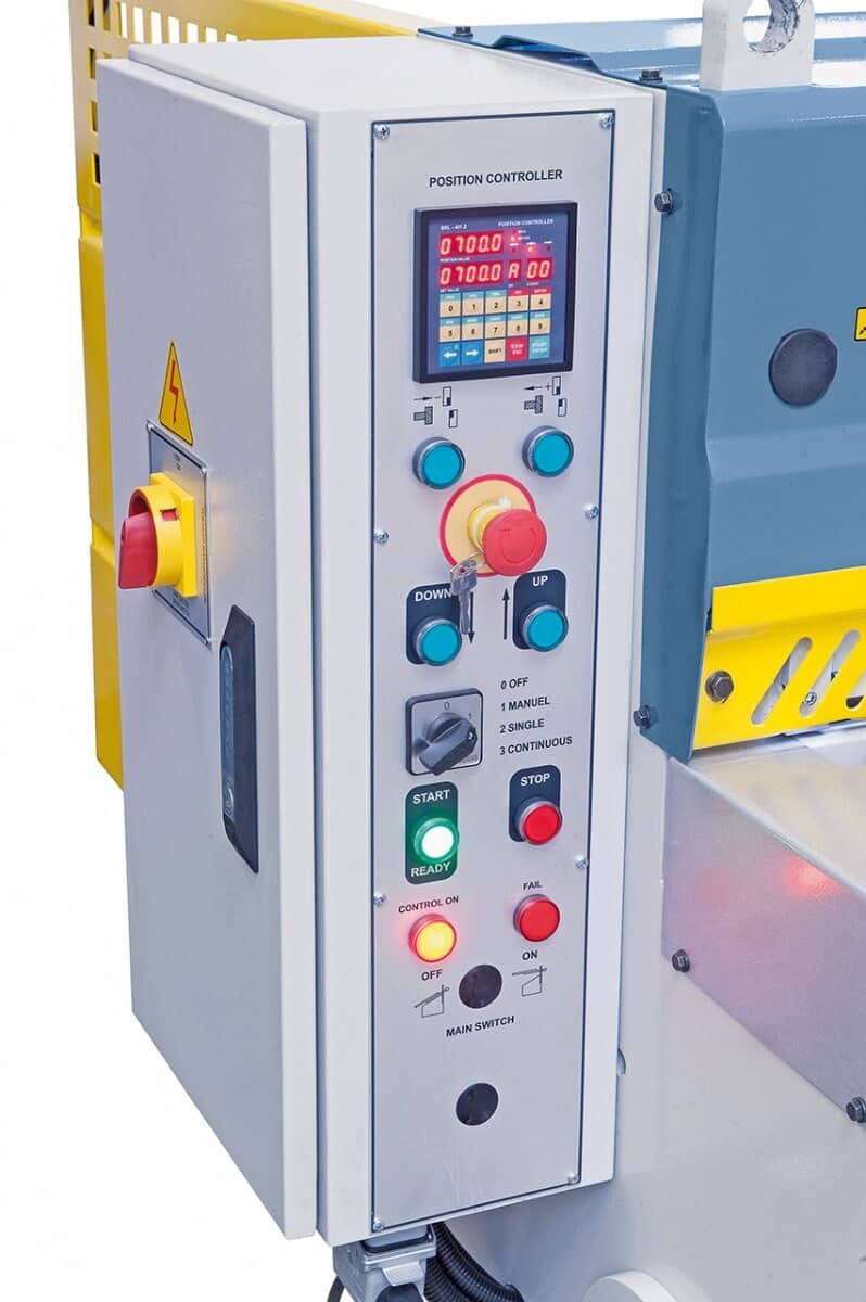 - Motorized back gauge, precise movement via ball screws