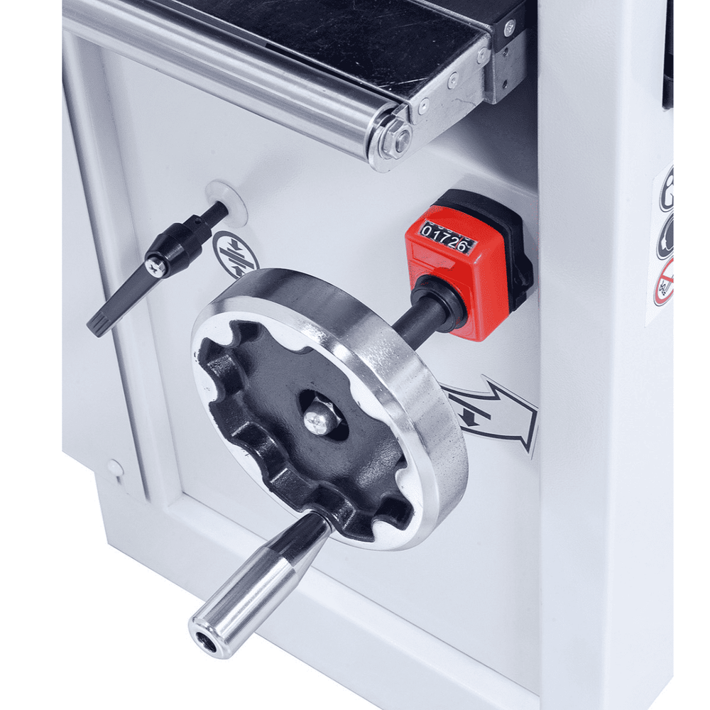 The DH 310 S thicknesser is a compact yet extremely powerful machine, ideal for demanding woodworkers who require precision, robustness, and quiet operation. Equipped with a spiral spindle with 52 TCT inserts and a center-column-guided table, it guarantees a perfect finish even on difficult woods.