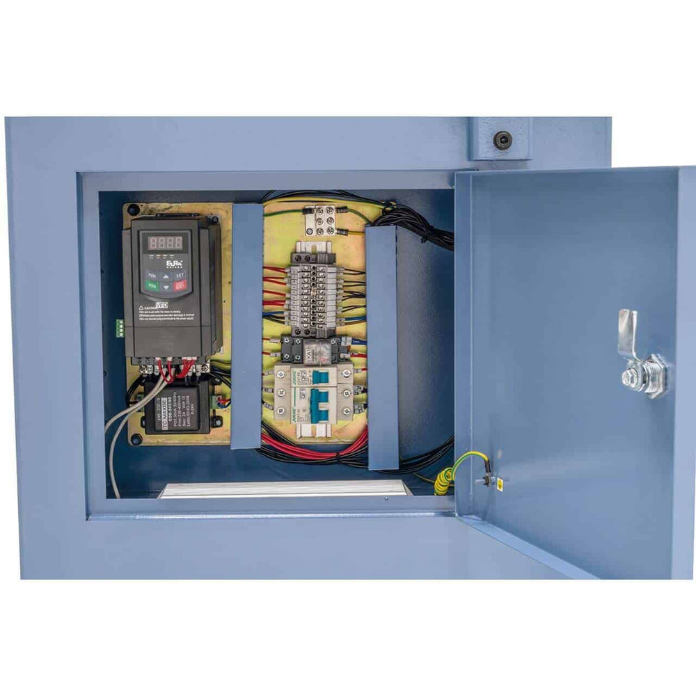 • Frequency converter included : This component allows you to continuously adjust the rotation speed, which is particularly useful for adapting the machine to the type of material or specific job.