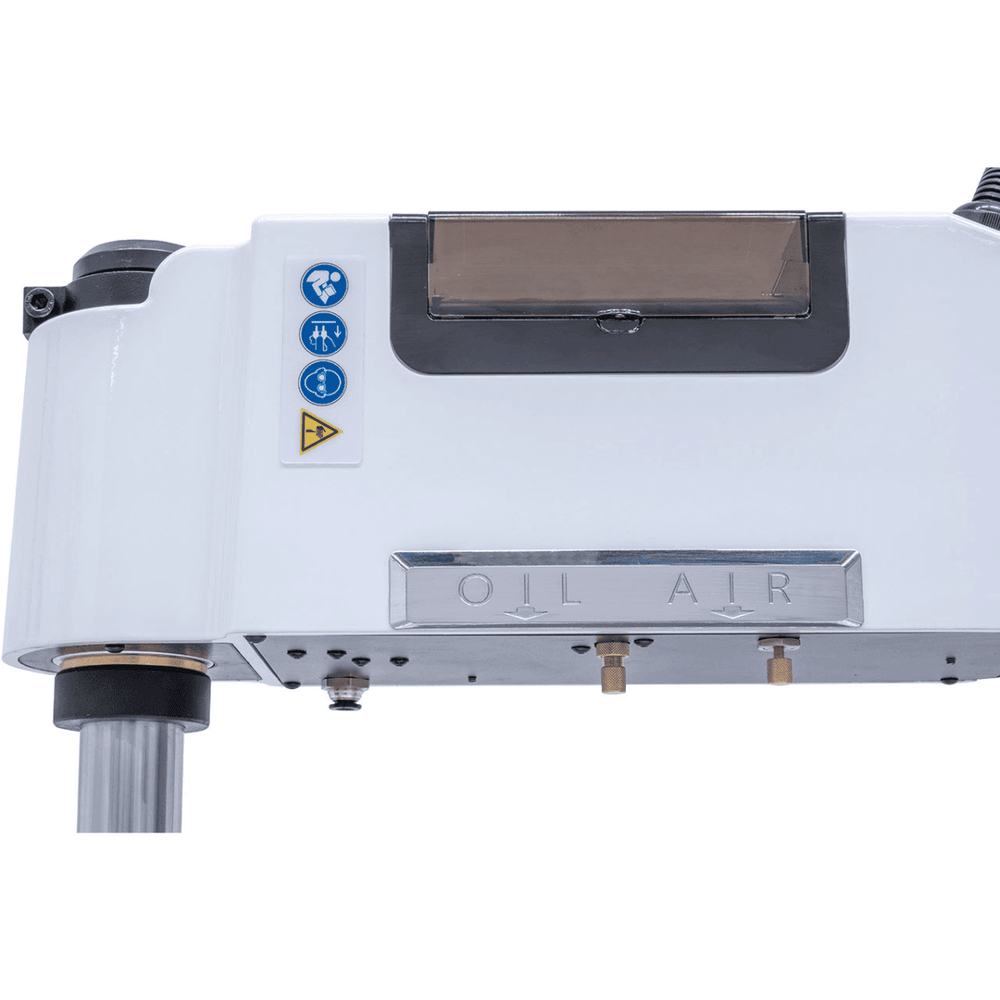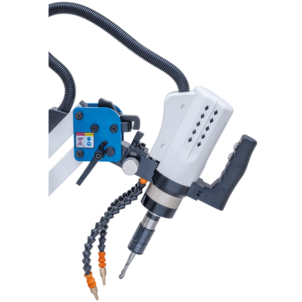 • Swivel arm included with large radius for easy positioning of the tap on the workpiece
