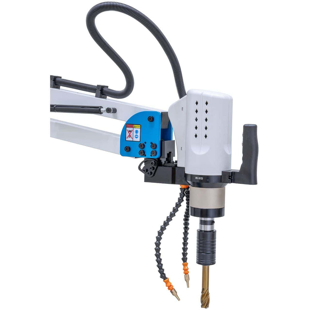 The quick-change chuck with slip joint prevents accidental tap breakage and achieves high productivity with significant time savings. The swivel arm with a wide range of action (1700 mm) allows for simple and precise positioning of the tap on the workpiece.