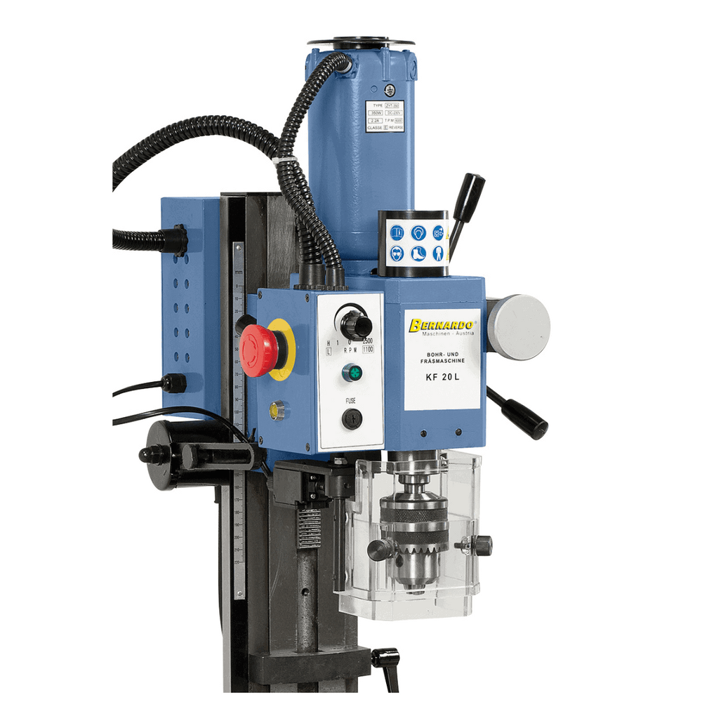 • Precision Spindle Feed: Milling is done by feeding the spindle via the handwheel, while drilling is done using the star knob, offering optimal control in both operations.