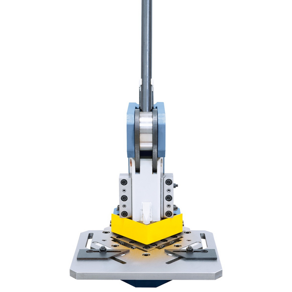 The AK 100 is a professional manual notching machine with mechanical transmission via eccentric, designed to produce clean, burr-free and deformation-free notches on sheet metal up to 3 mm thick (at 400 N/mm²).