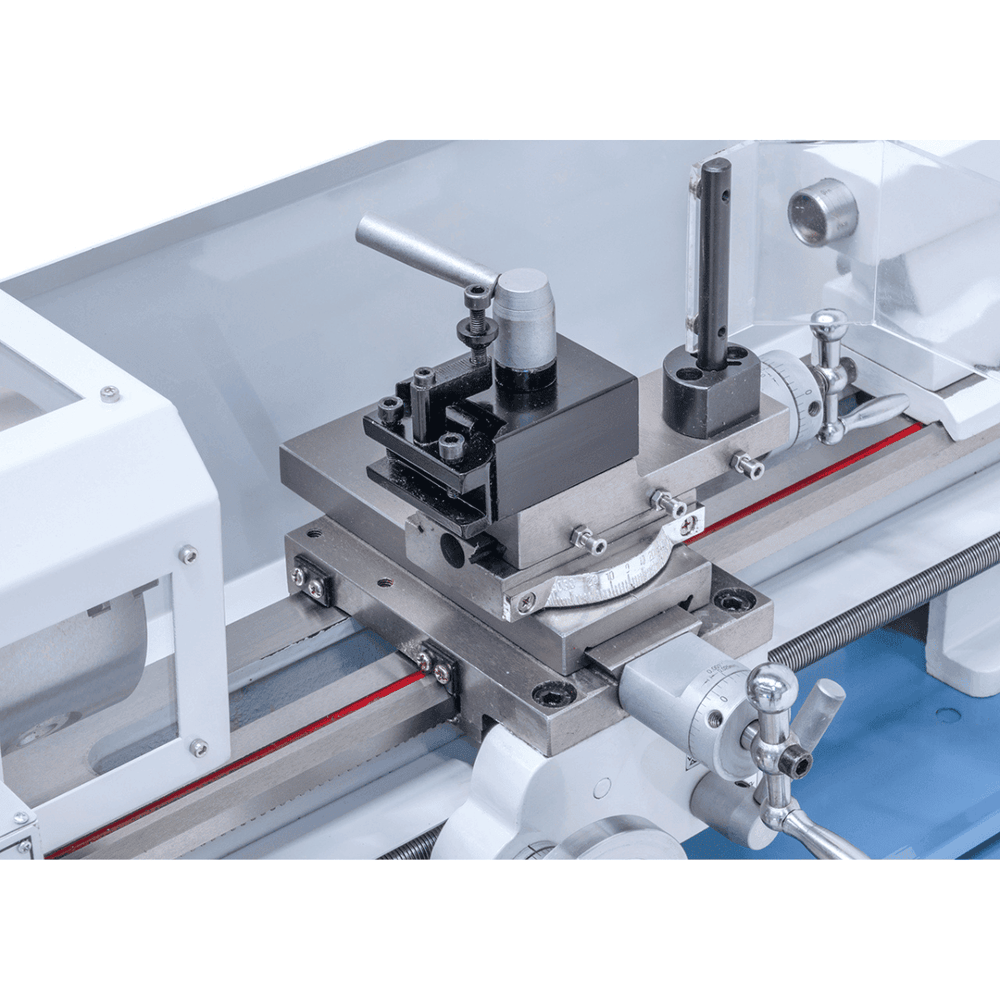 The Hobby 350 Vario benchtop lathe offers additional features over the Hobby 300 Vario model, including a 50 mm longer tip length and a more powerful drive motor. To reduce production times, this model can be equipped with a 2-axis digital display.