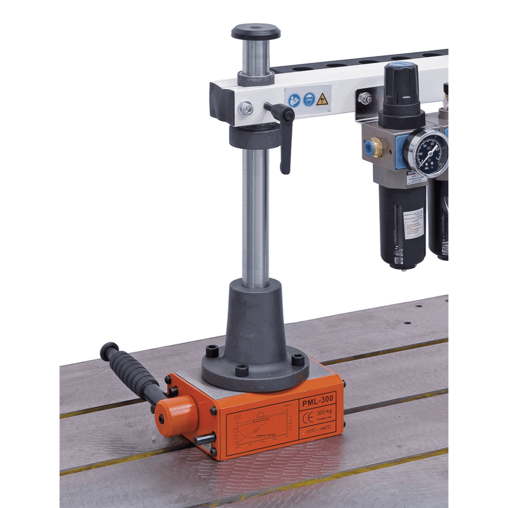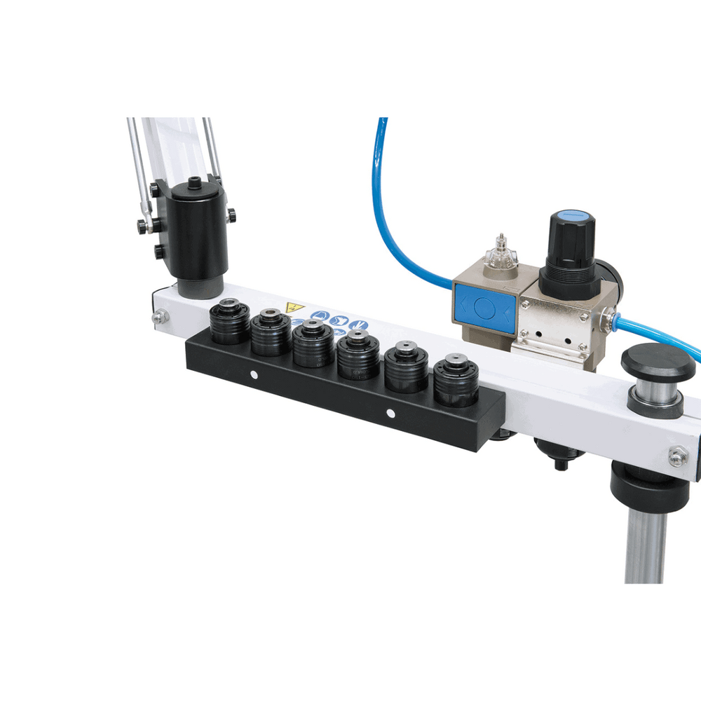 • Swivel arm included with large radius for easy positioning of the tap on the workpiece