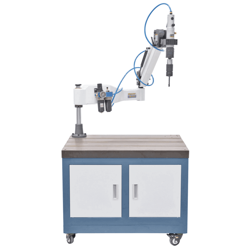 • Swivel arm included with large radius for easy positioning of the tap on the workpiece