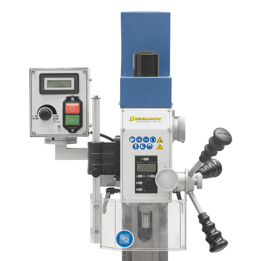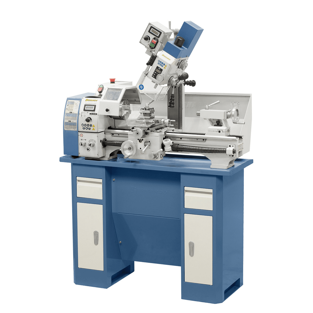 The Proficenter 550 WQV machining center leaves nothing to be desired when it comes to precision mechanics, apprentice workshops, training institutes, etc. For drilling, milling and turning in confined spaces, it comes standard with a digital display showing drilling depth and speed for convenient working, as well as a large spindle bore – all combined in a single machine.