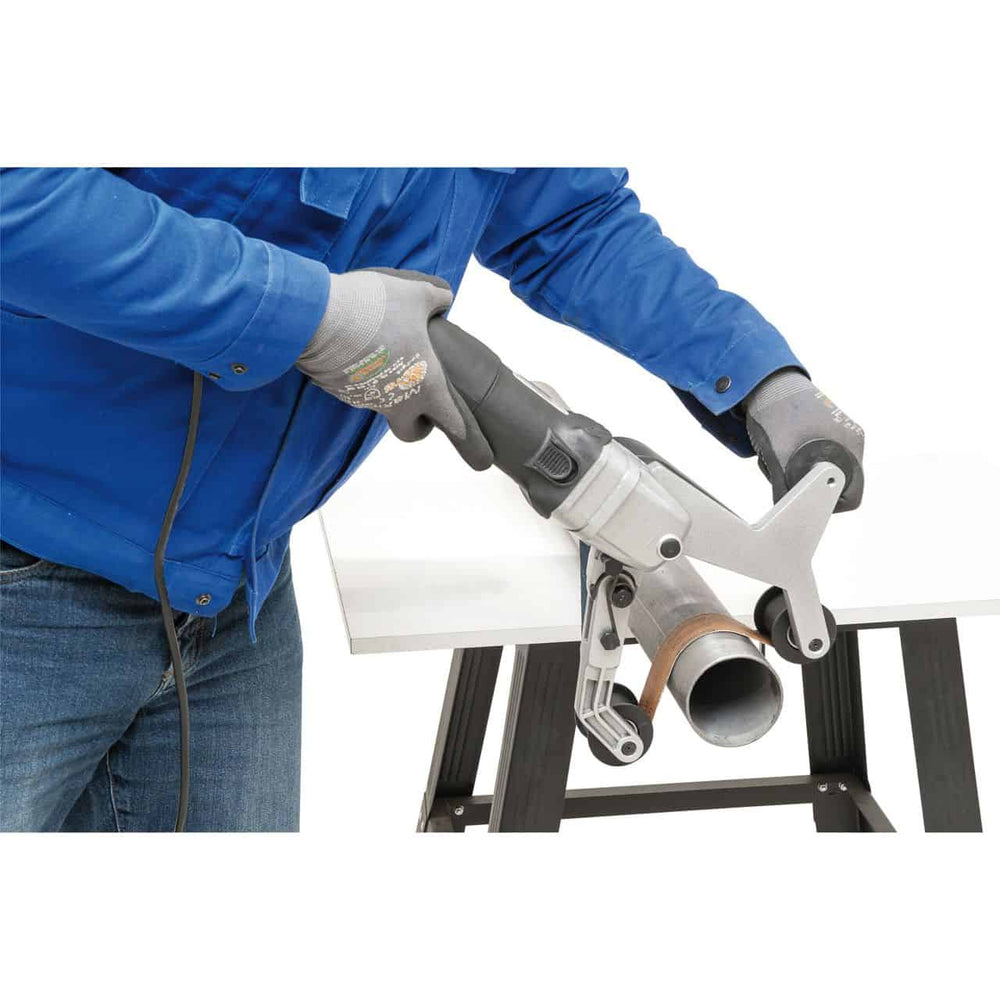 The TBS 760 pipe grinder is a particularly handy and versatile tool for various grinding, polishing, and satin finishing tasks. This machine is primarily used for the construction of metal railings and structures, as well as for metalworking.