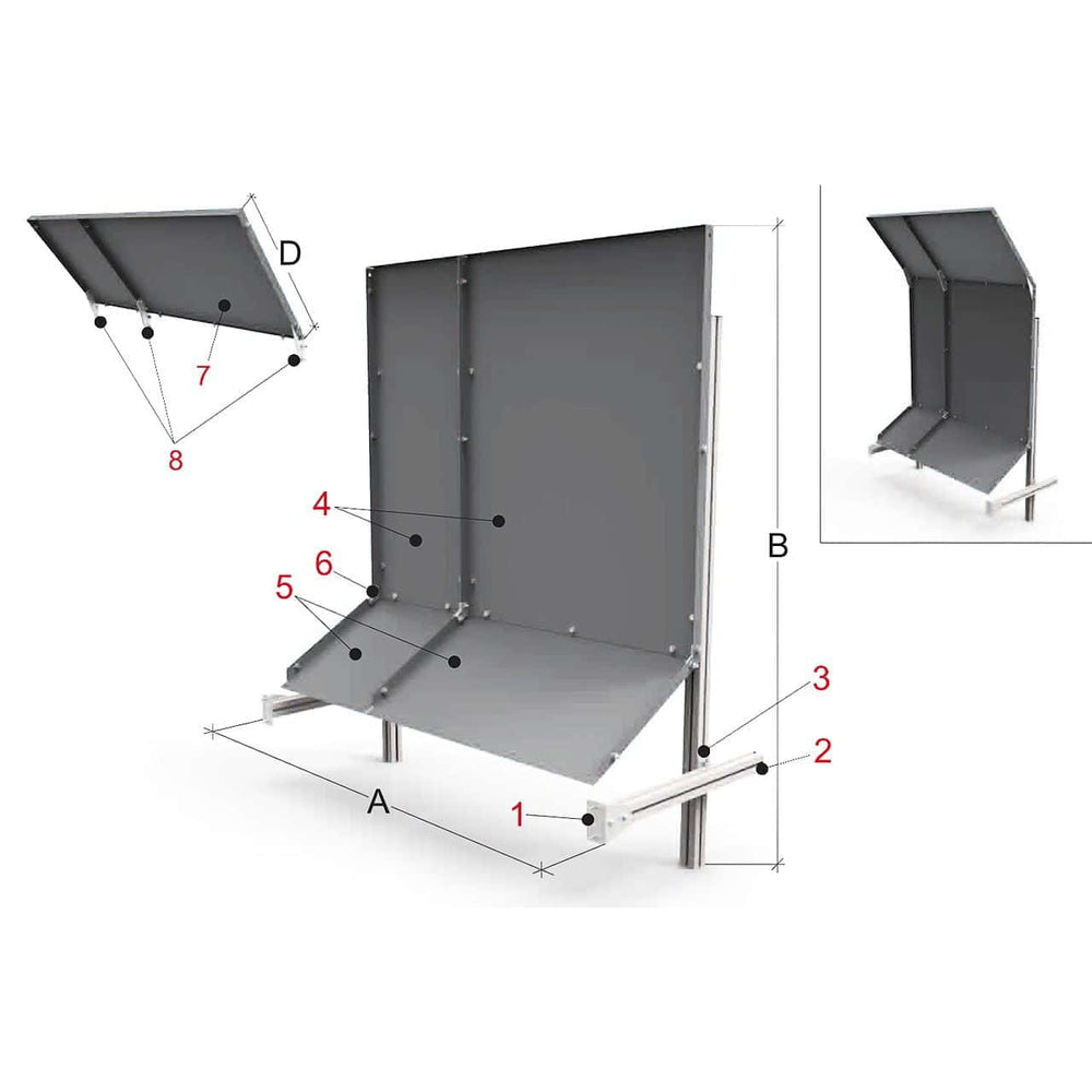 This guard can be installed on the underside of the lathe body or on the floor, thanks to a system of adjustable arms made of aluminum profiles. Upon request, the PTO31/.../T item is available with a built-in inclined cover for better protection towards the top.