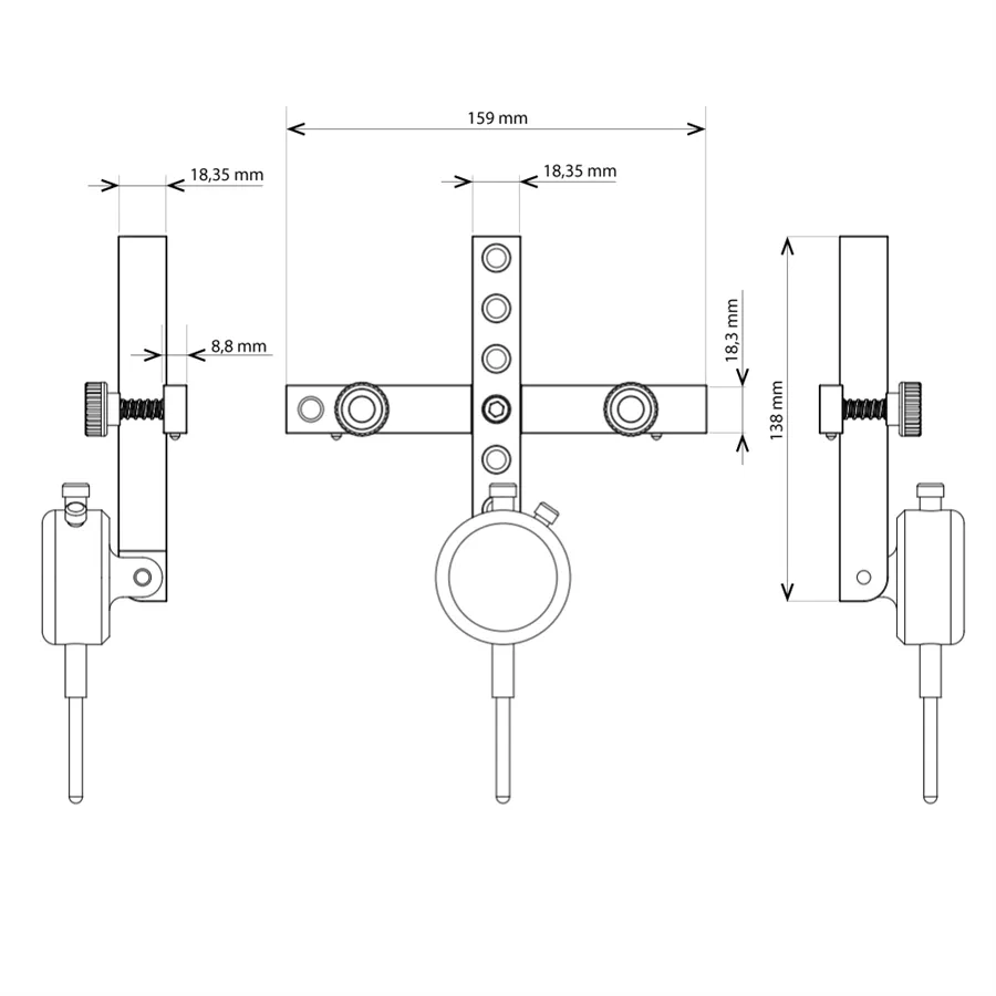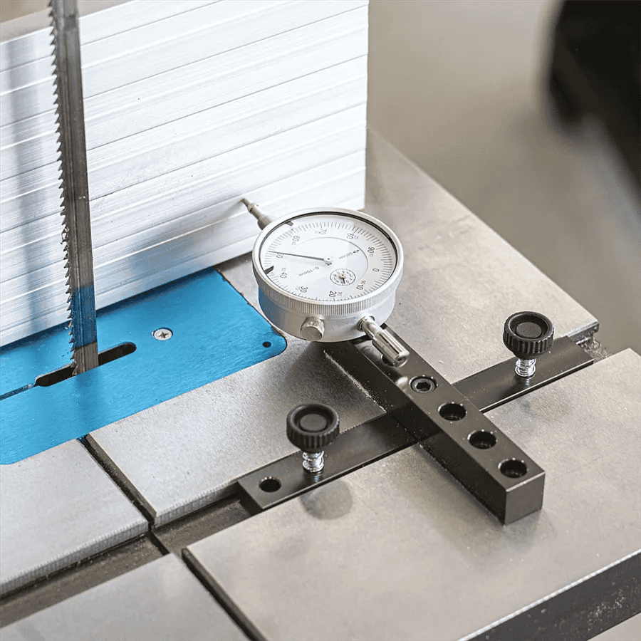 The Saw Alignment Device is used to precisely adjust misaligned blades and fences. Precise adjustment is possible thanks to a spring-loaded pin on the dial with an accuracy of 0.01 mm. The device comes with a dial, mounting bar, and dovetail bar. The dial is mounted on the mounting bar, which in turn is inserted over the dovetail bar. The entire device fits any dovetail groove. An invaluable tool for those seeking precision and quality results.
