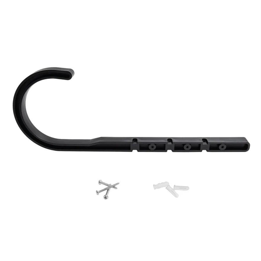 Designed with a series of positioning holes, these hooks can be screwed into any configuration or grouping needed, offering flexibility and customization in organizing your space. Supplied with three anchors and screws, these hooks are ready for quick and easy installation, allowing you to create a practical and efficient storage system for hoses, ropes, and other flexible materials.