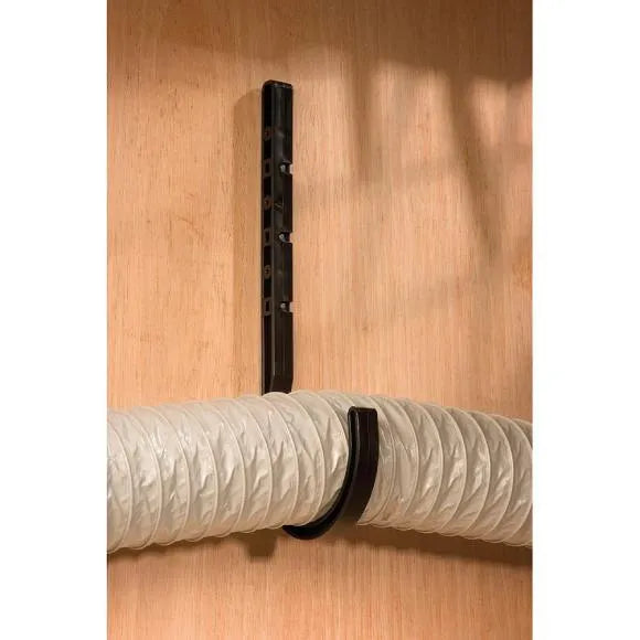 The 100mm Plastic Hose Hanger is the ideal solution for keeping hoses, cords, and extension cords neatly organized. Thanks to its 100mm diameter curve, it's perfect for holding dust extractor hoses along a wall, ensuring a tidy and safe work environment.