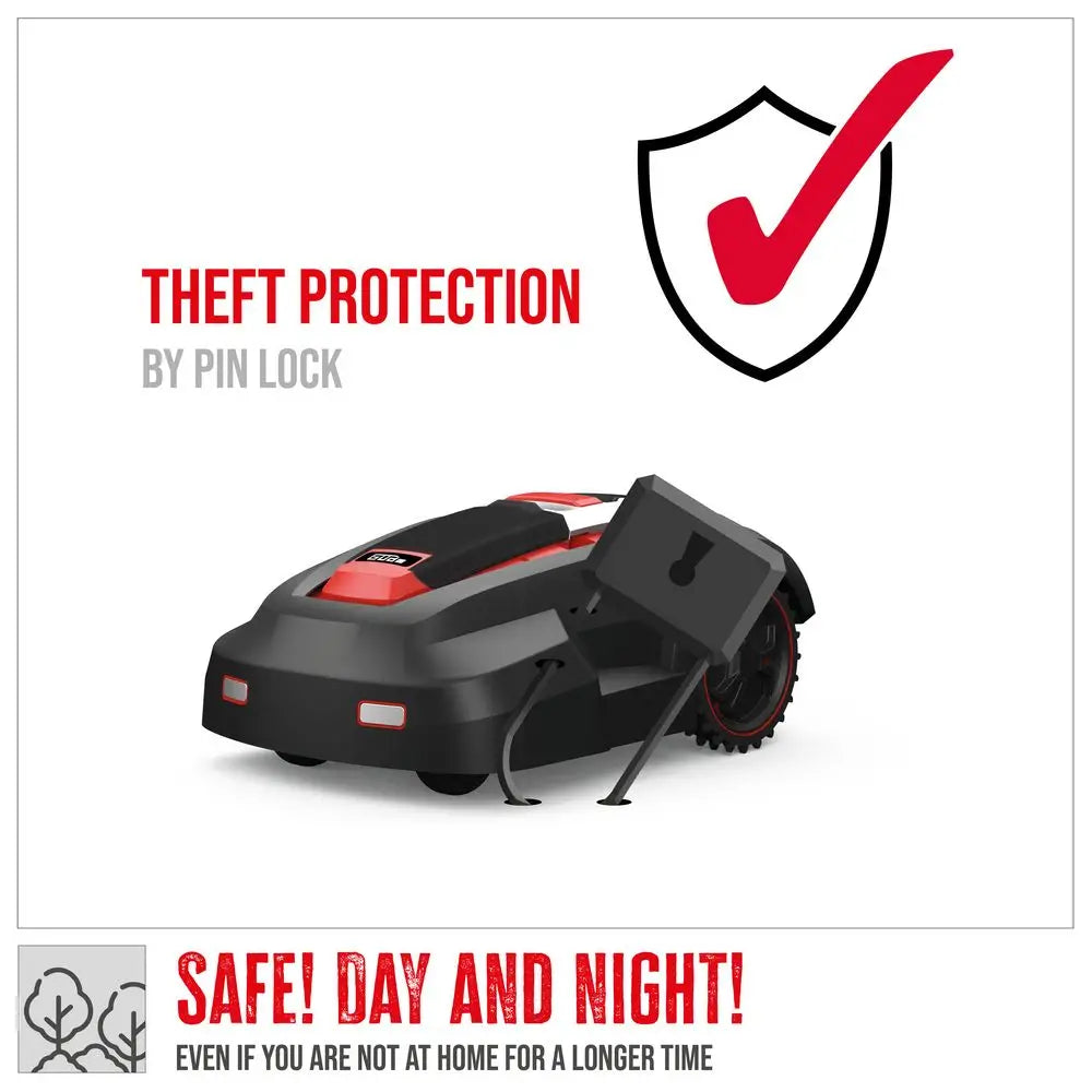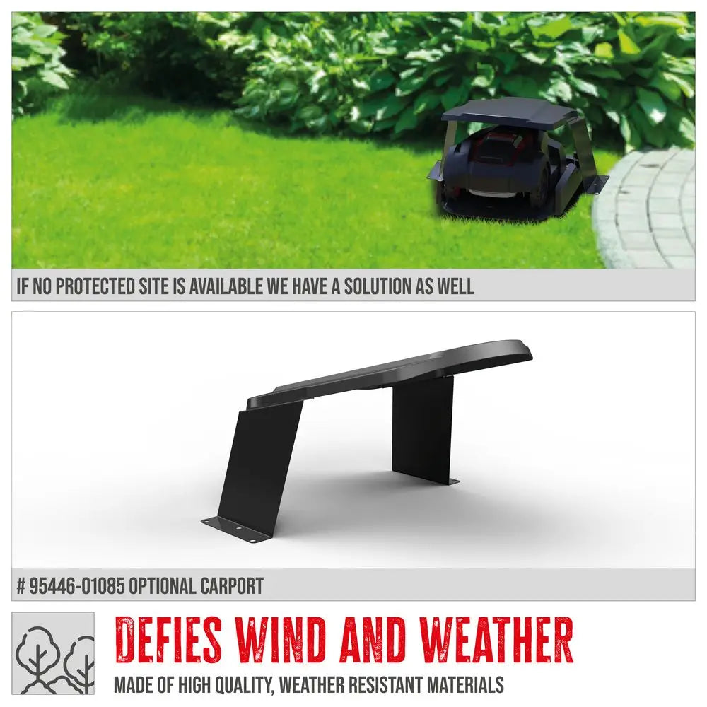 (Accessori opzionali: filo perimetrale 100 m #95446-01082, lame 9 pz #95446-01047, copertura carport #95447-01085, picchetti #95446-01079, pesi ruota #95446-01070)