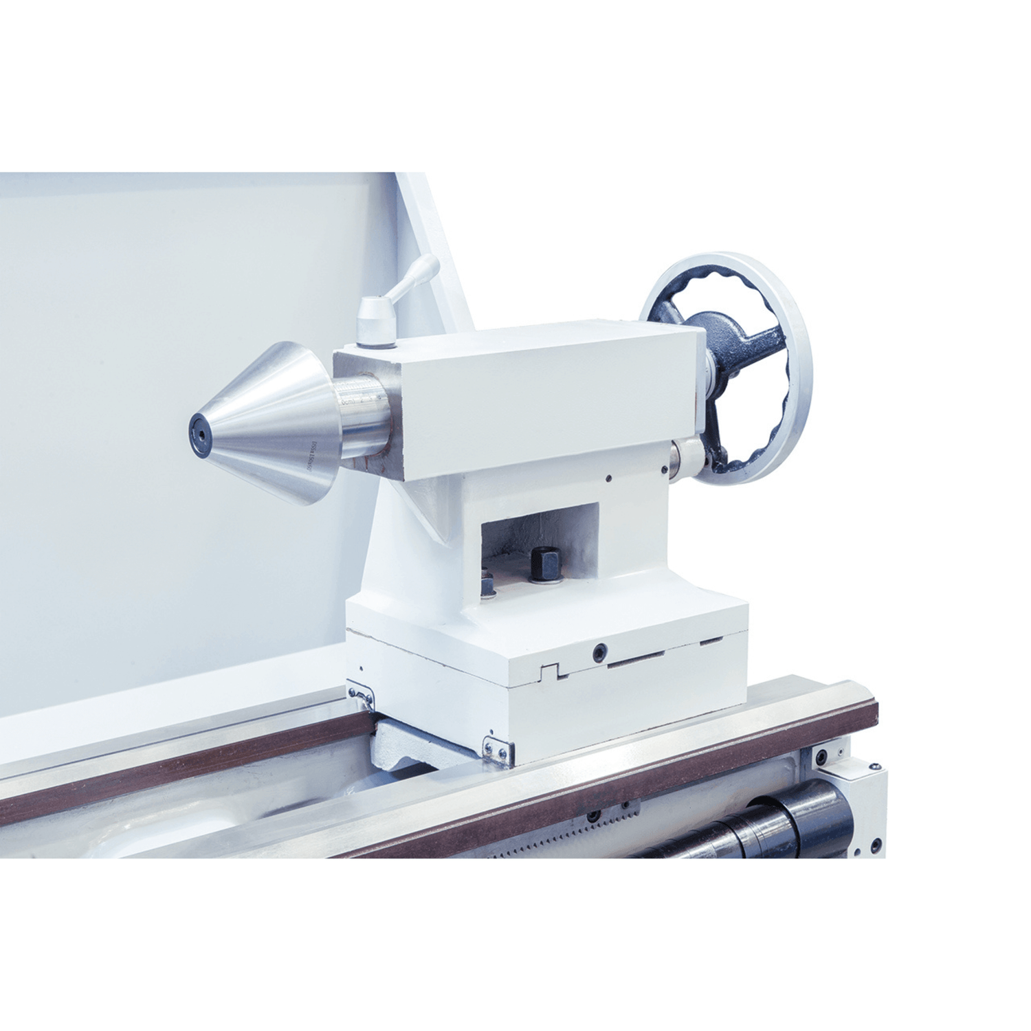 - Tailstock can be repositioned for taper turning, scale adjustable with handwheel (0.02 mm)