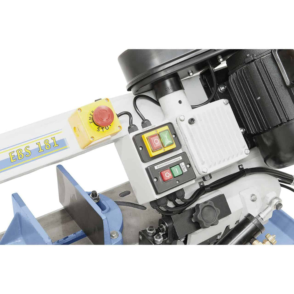 The high-quality EBS 181 metal band saw, thanks to its robust construction, prevents the saw blade from running off-center and ensures precise cuts. This model's primary application is for the more cost-conscious user.