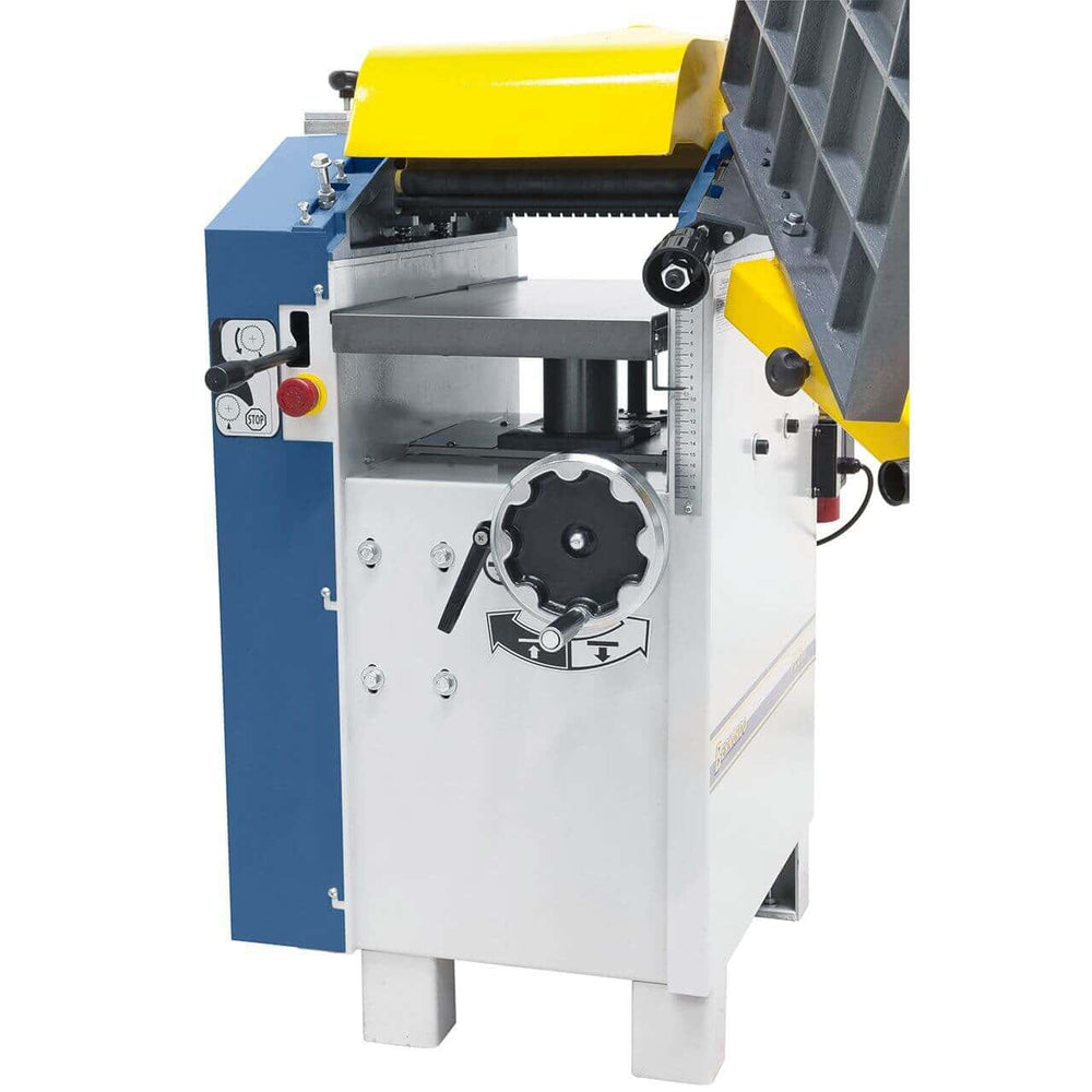 The PT 310 is a compact combination planer designed for precision and versatility when working with boards, beams, and planks. With a thicknessing height of up to 180 mm and torsion-resistant gray cast iron tables, it's an excellent choice for discerning craftsmen and professionals. It's also ready for the optional addition of a mortising unit.