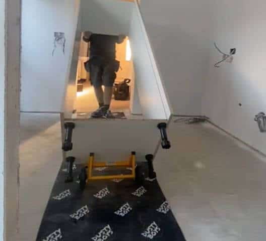 It facilitates the transport of large and heavy cabinets, improving work efficiency.