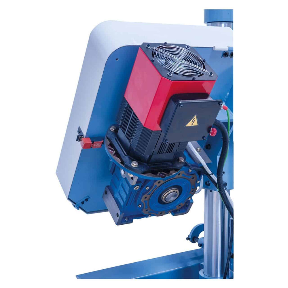 • Power transmission via a gearbox and servomotor with continuously adjustable cutting speed: Power transmission is via a gearbox and servomotor, which allows for continuously adjustable cutting speed. This allows for precise speed control, adapting it to the specific requirements of the material and cutting operation.
