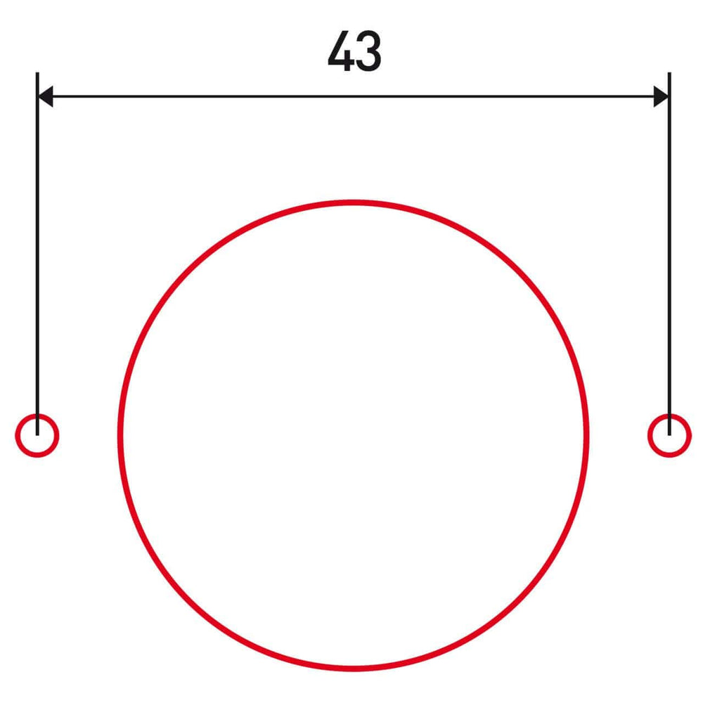 This drilling template is a drilling template for window handles whose fixing screws are mounted at a distance of 43 mm