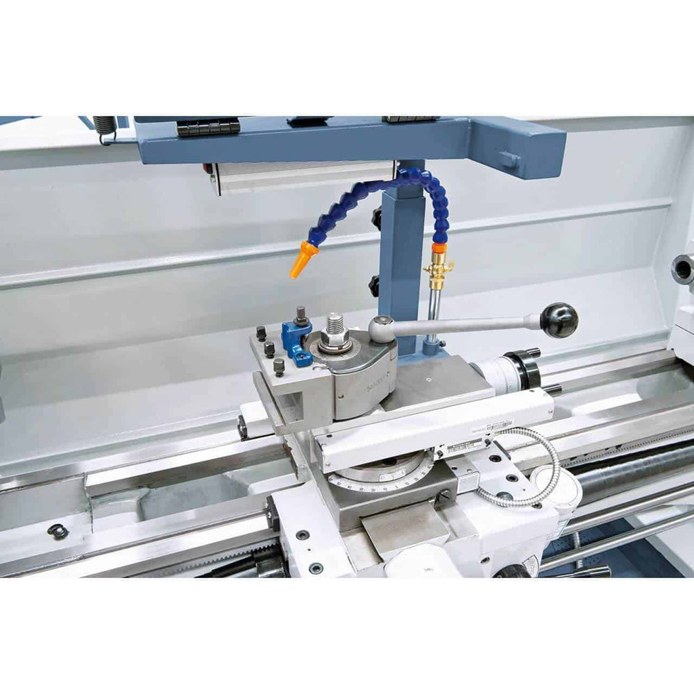 The Master 410 Pro Vario is a compact universal lathe with a wide range of applications, particularly impressive due to its 410 mm turning diameter and 52 mm spindle bore. Thanks to its design (design, performance, power supply, etc.), it can be successfully used in educational institutions, as well as for toolmaking and repair shops. This model also features a variable speed controller for optimal cutting speed adjustment.