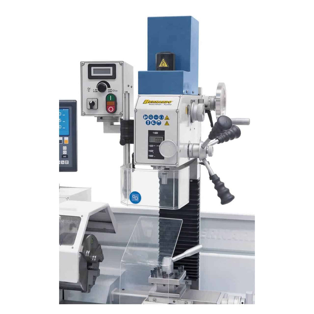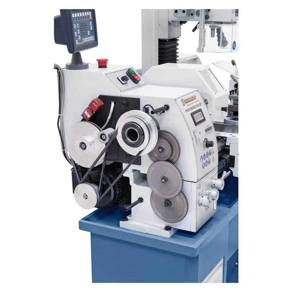 The new Proficenter 700 Top model is equipped with a frequency converter. Its significant advantages include high torque with a low speed range and approximately constant torque under load. Thanks to its many features (e.g., three-phase motor with frequency converter, P5-quality main spindle bearing, micrometric longitudinal stop for serial work, slip clutch, etc.), this model is ideal for the demanding user.
