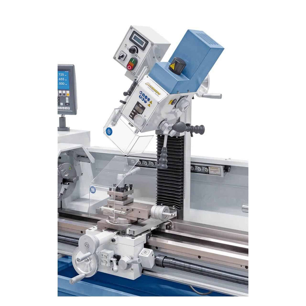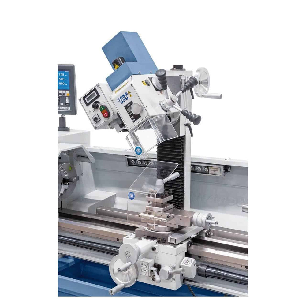 The Proficenter 900 Vario lathe is the ideal machining center thanks to its extensive basic features (e.g., milling attachment, three-phase motor with frequency converter, P5 quality main spindle bearing, micrometric longitudinal stop, slip clutch, LED machine light, etc.). The Proficenter 900 Vario is the ideal machine for the demanding user. To reduce production times, this model is also available with a 2-axis digital readout. Property
