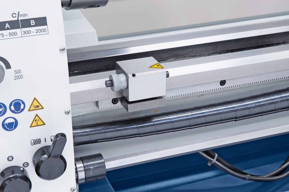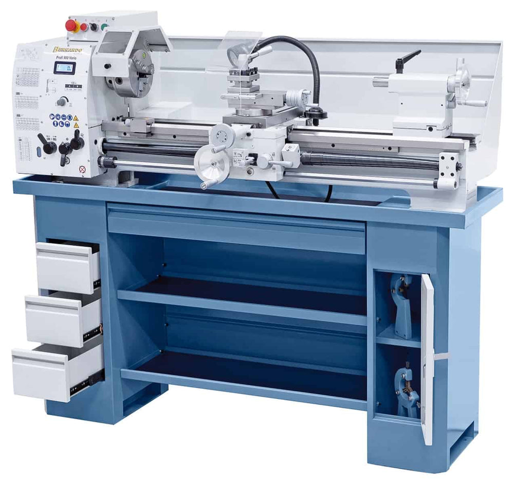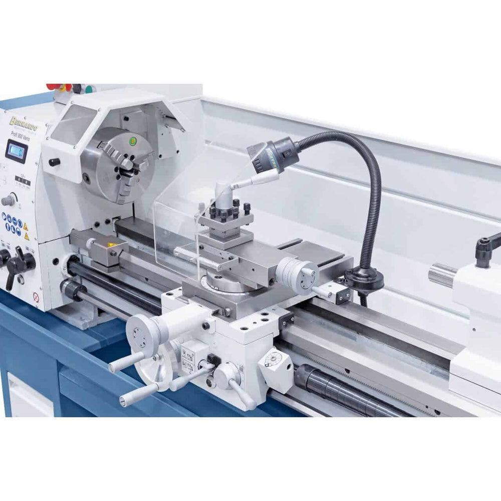 The Profi 900 Vario lathe, thanks to its extensive standard features (e.g., three-phase motor with frequency converter, P5-quality main spindle bearing, micrometric longitudinal stop, slip clutch, LED machine light, etc.), is the ideal model for the discerning user. To reduce production times, this model is also available with a 2-axis digital display.