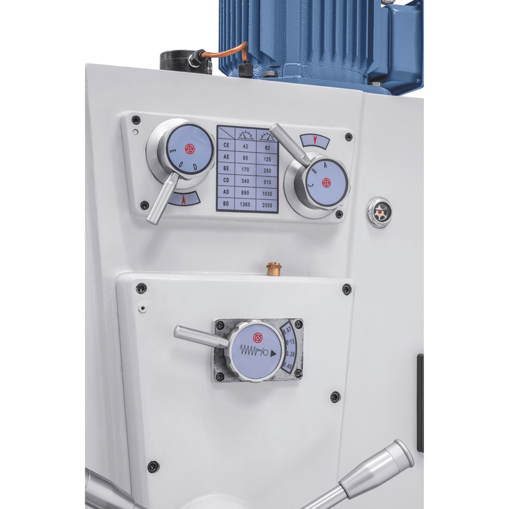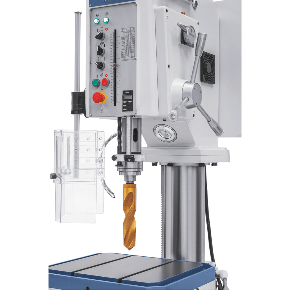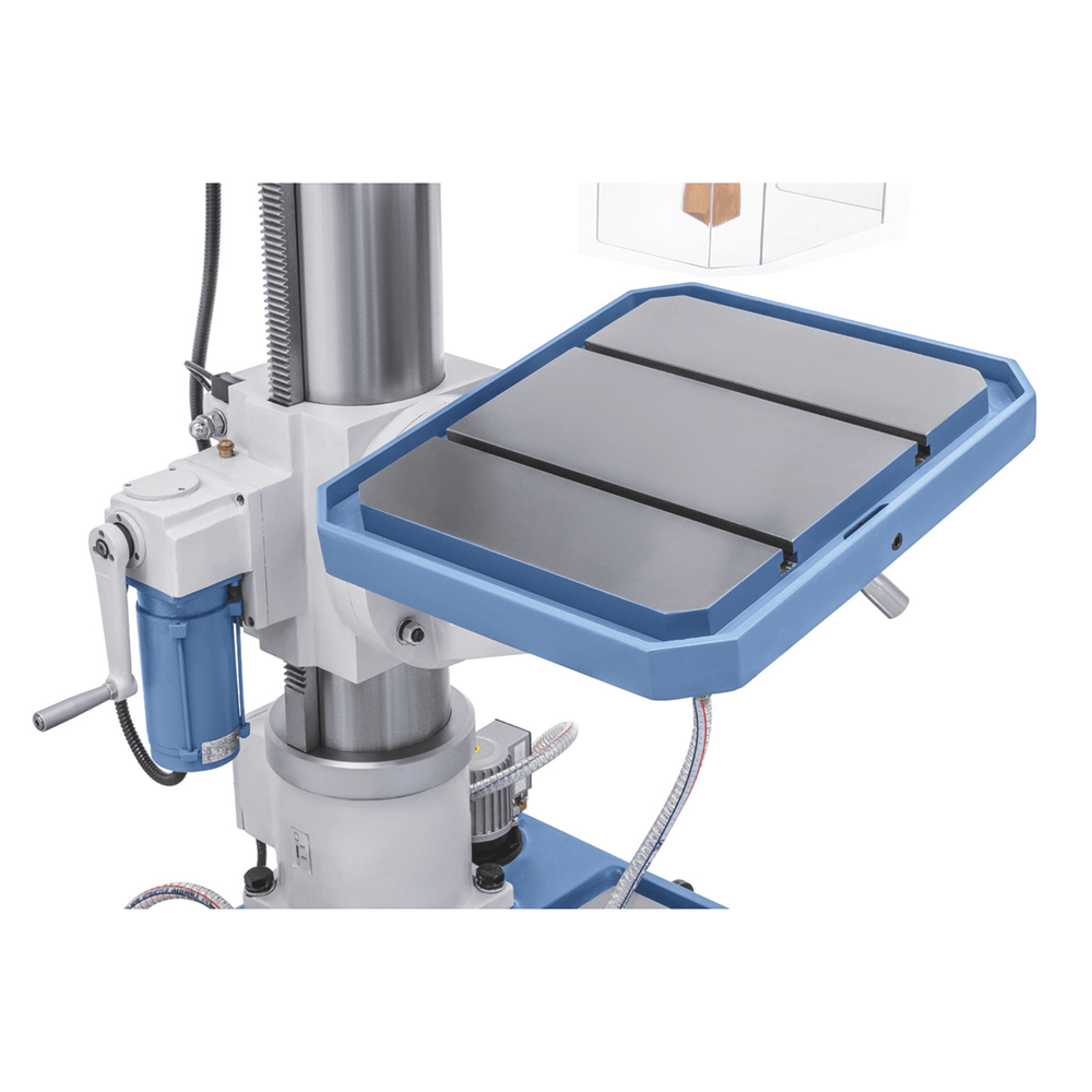 The GB 55 drill press is a robust and professional machine, ideal for machine shops, maintenance departments, and industrial production. Thanks to its height-adjustable electric table, gear transmission, and numerous automatic functions, it allows for precise, safe, and efficient work even during intensive production cycles.