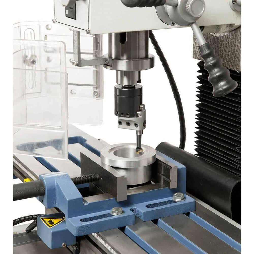 The KF 25 Pro drill and milling machine is a versatile and powerful machine, designed to meet the needs of the most demanding users. With speeds of up to 3000 rpm, a 900 W motor, and an MK 3 spindle mount, this model stands out for its high precision and reliability. It is particularly suitable for grooving, facing, boring, and other complex machining operations. To further optimize productivity, the KF 25 Pro is also available with a 3-axis position display and continuously adjustable milling table feed.