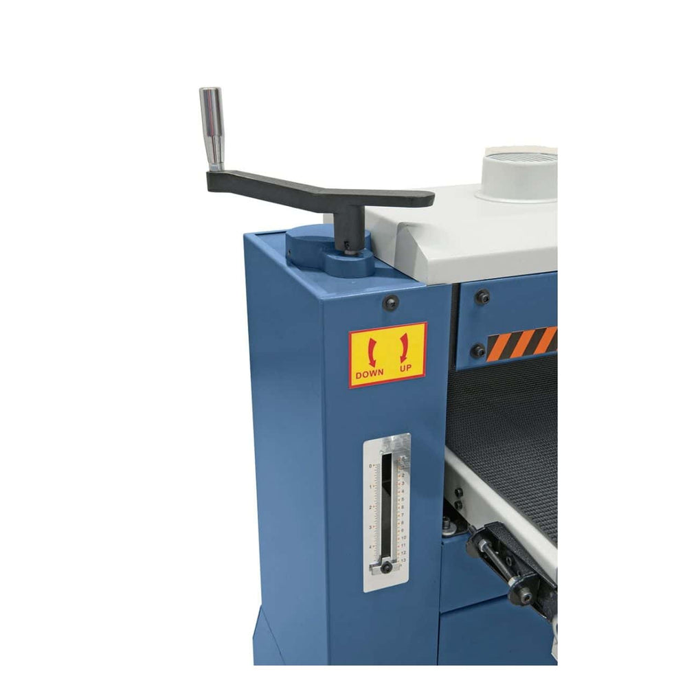 • Precise height adjustment of the work table via graduated scale and crank for easy use.