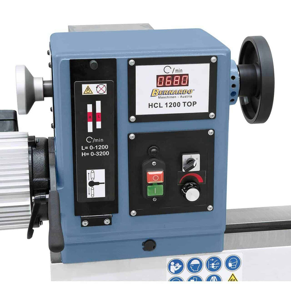 The HCL 1200 Top wood lathe is a professional machine designed for demanding craftsmen and advanced hobbyists. Thanks to its larger turning diameter than the HCL 1200 model, electronic speed control, and heavy cast iron construction, it ensures precise results even when machining large workpieces. The integrated Delta inverter guarantees maximum torque even at low speeds.