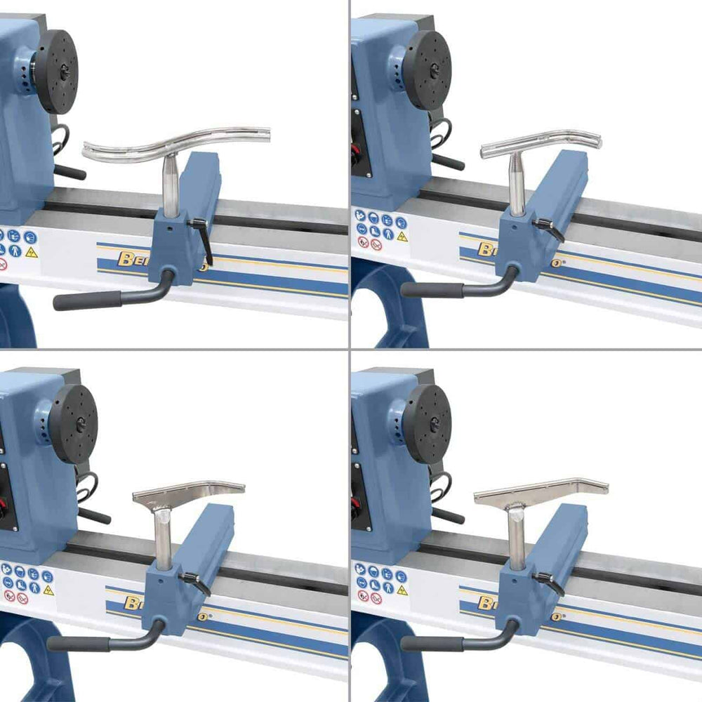 The lathe comes with tool rest, faceplate, tailstock, driver bit, Delta inverter, LED display and tooling.