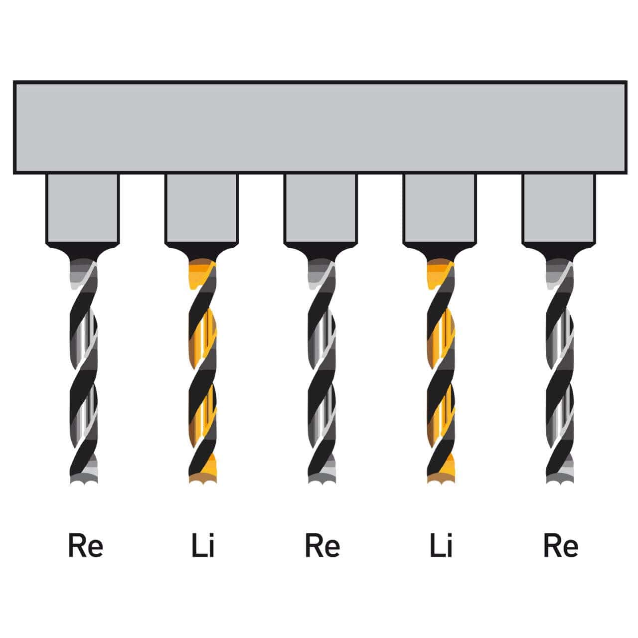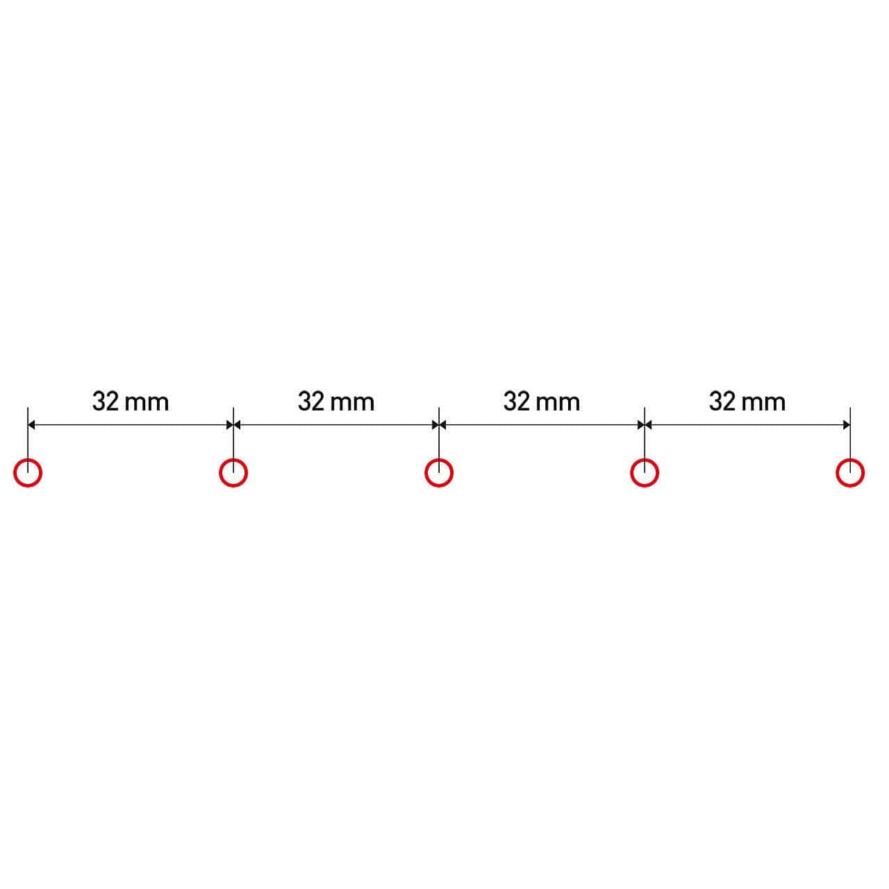 • Esegue cinque fori simultanei con interasse standard da 32 mm