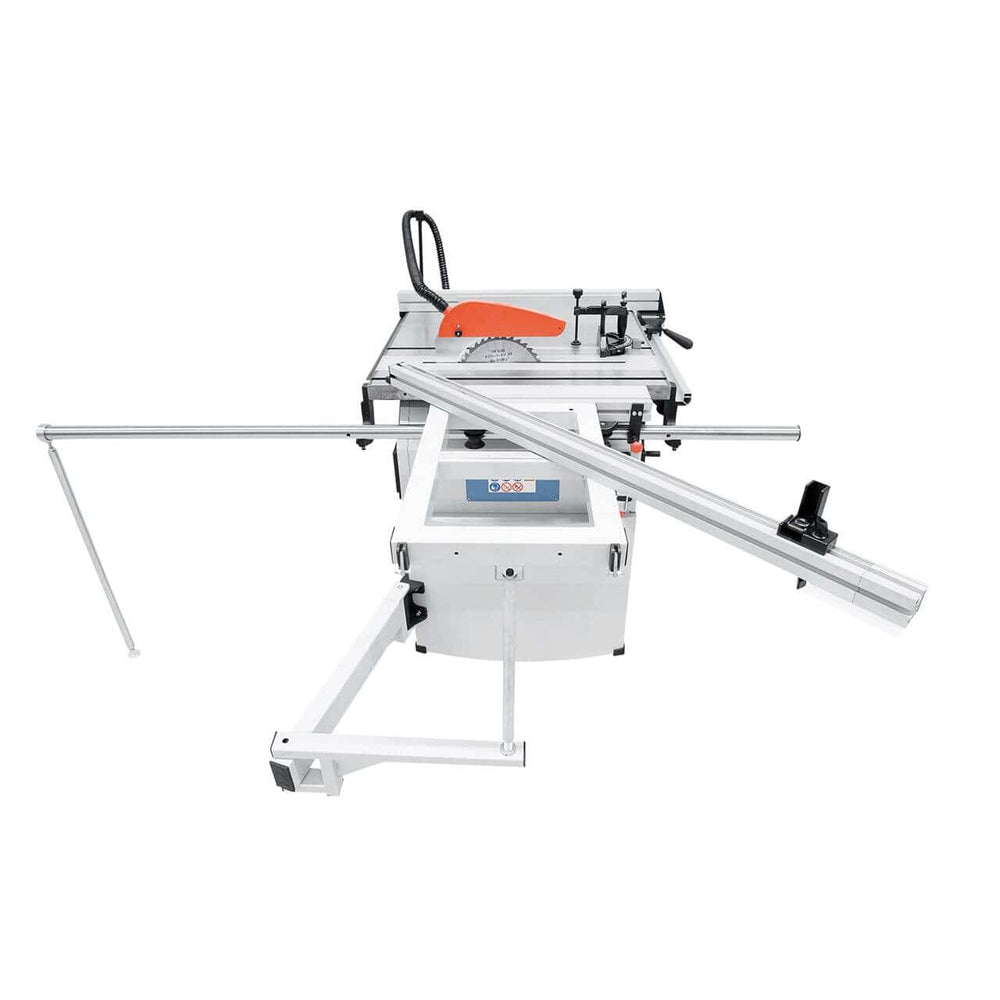 Il tavolo principale in ghisa da 800 × 520 mm, abbinato alle estensioni laterali, assicura stabilità durante la lavorazione di pezzi di grandi dimensioni. La lama inclinabile permette tagli fino a 82 mm a 90° e 54 mm a 45°, mentre la battuta parallela da 730 mm assicura precisione nei tagli longitudinali. Con un motore da 1,5 kW (S1) e potenza in uscita fino a 2,1 kW (S6), la macchina combina compattezza e prestazioni professionali.