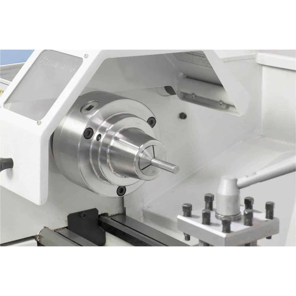 Il tornio Bernardo Profi 550 LZ / 230 V è un modello compatto e affidabile, pensato per lavorazioni di precisione in officina e nei laboratori di formazione. Dotato di vite madre e barra avanzamenti, offre stabilità e versatilità anche per lavori complessi. Con passaggio barra da 26 mm, bancale temprato a induzione e guide rettificate, garantisce lunga durata e precisione costante. La velocità regolabile in continuo da 50 a 2000 giri/min consente di adattarsi a diversi materiali, mentre il mandrino, montato su cuscinetti conici di qualità, assicura concentricità ≤0,015 mm. Ideale per torniture, filettature metriche e in pollici, è fornito completo di mandrino autocentrante, torretta portautensili e accessori professionali.