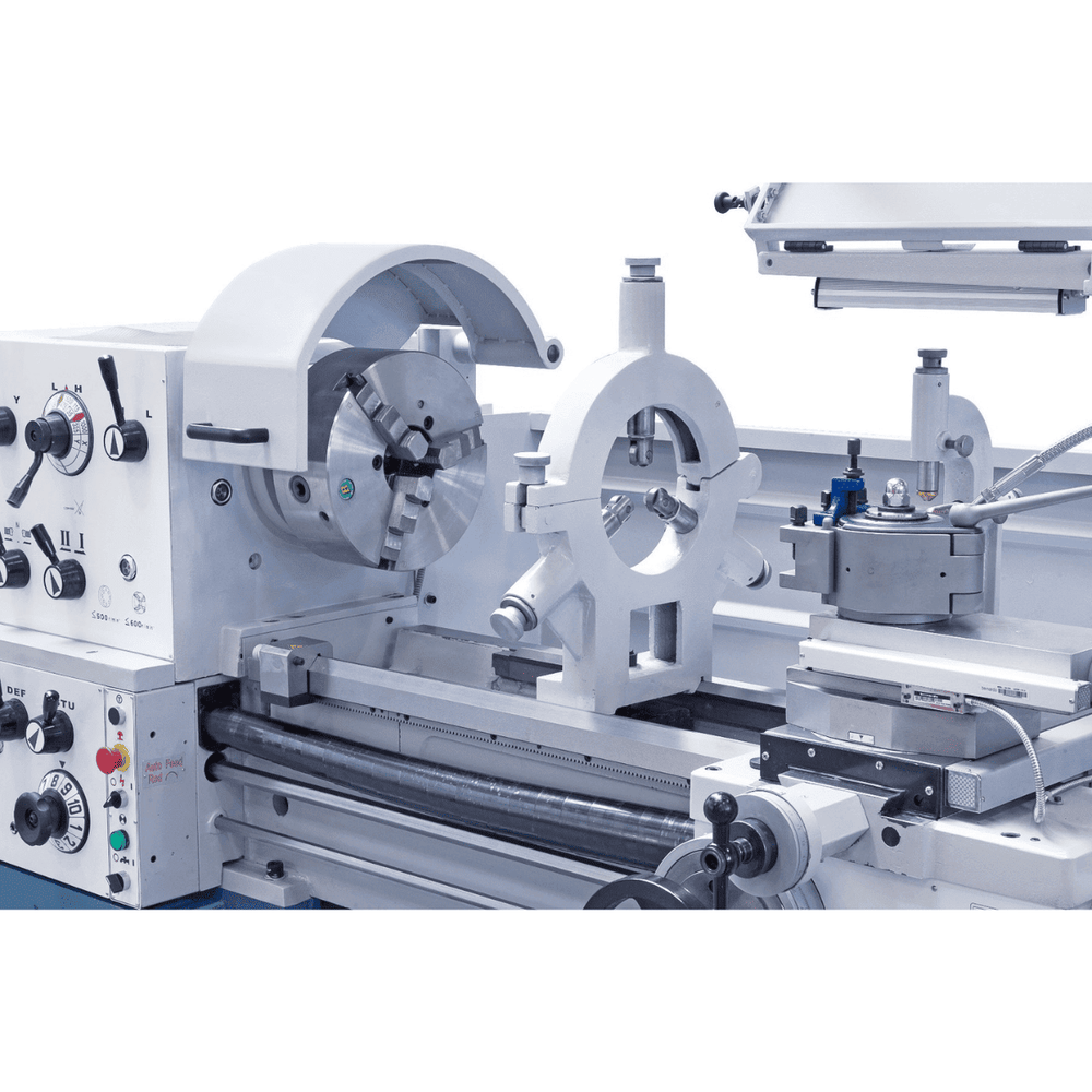 Il tornio Bernardo TITAN 560 x 2000 Pro è una macchina professionale per lavorazioni pesanti e di precisione su pezzi di grandi dimensioni. Con distanza tra le punte di 2000 mm e altezza punta di 280 mm, permette di tornire diametri fino a Ø 560 mm sul banco e Ø 785 mm sul gap, garantendo rigidità e precisione grazie al bancale da 350 mm. Il mandrino con foro da 105 mm e attacco D1-8 (DIN 55029) assicura robustezza anche sotto sforzi elevati. La gamma di velocità da 25 a 1500 giri/min (12 step) e le numerose possibilità di filettatura (41 metriche e 60 in pollici) lo rendono estremamente versatile. Con motore da 7,5 kW, freno magnetico, avanzamenti rapidi e visualizzatore digitale a 3 assi ES-12 V, il TITAN 560 x 2000 Pro è la soluzione ideale per officine meccaniche, carpenterie e produzioni industriali di medio-grandi dimensioni.